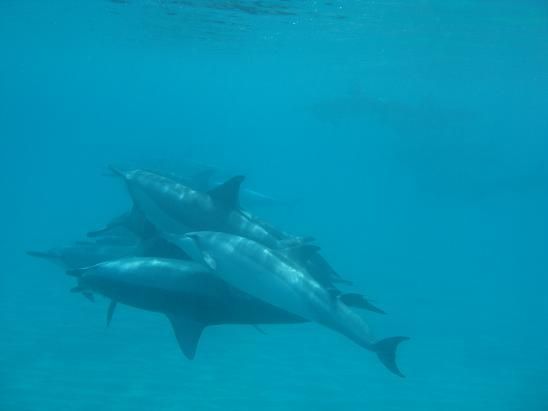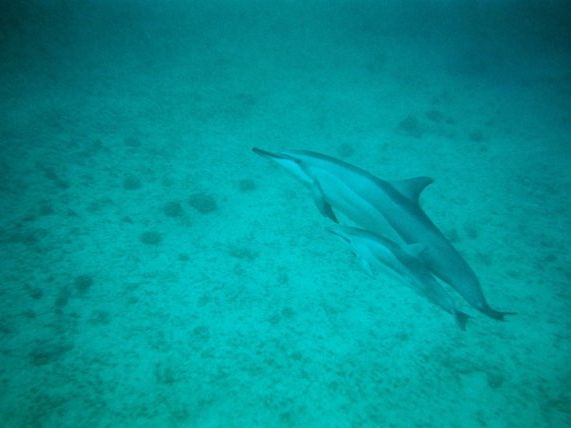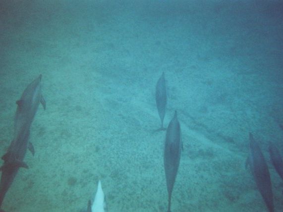最初は、群れていたようですが、途中で二手に分かれました。私は少ないイルカについていたのですが、彼らは遊びながらゆったり泳いでくれて、手を伸ばせばあたっちゃう!と思うほどの距離まで近づく事もありました(*^_^*)