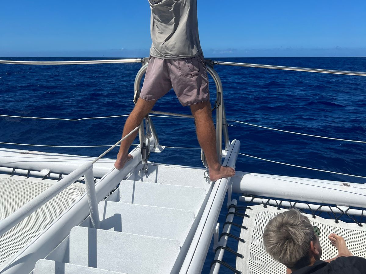 カタマラン船からみんなで(まぁ我々はおまけですが)イルカを探しながら外洋に出ていくだけでワクワクします。