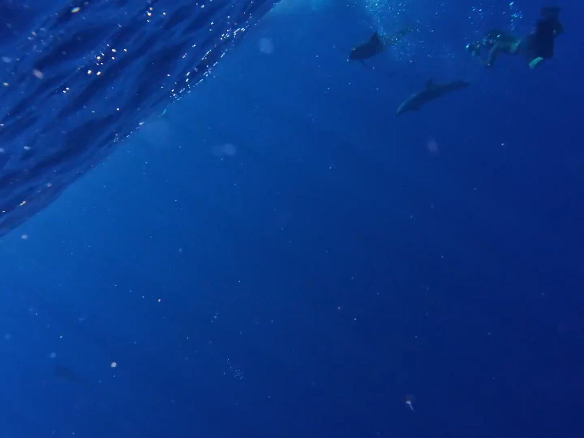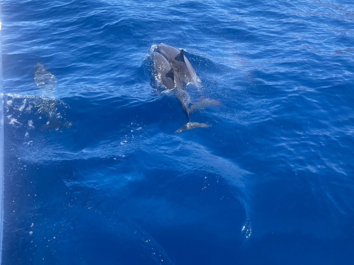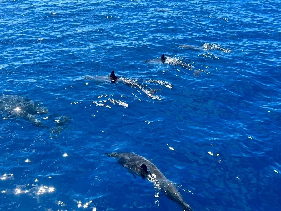 ゴンドウクジラが群れをなしてジャンプする姿が船上から見られて感動でした!4回も潜らせていただき感謝です。しかし結局最後までイルカには会えず。(ゴンドウクジラも正確にはイルカの仲間らしく、飛んでる姿はイルカに見えました笑)