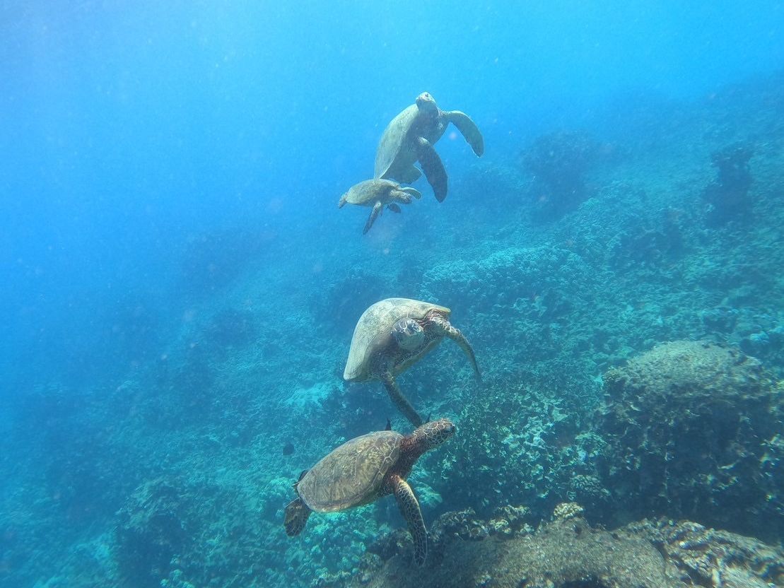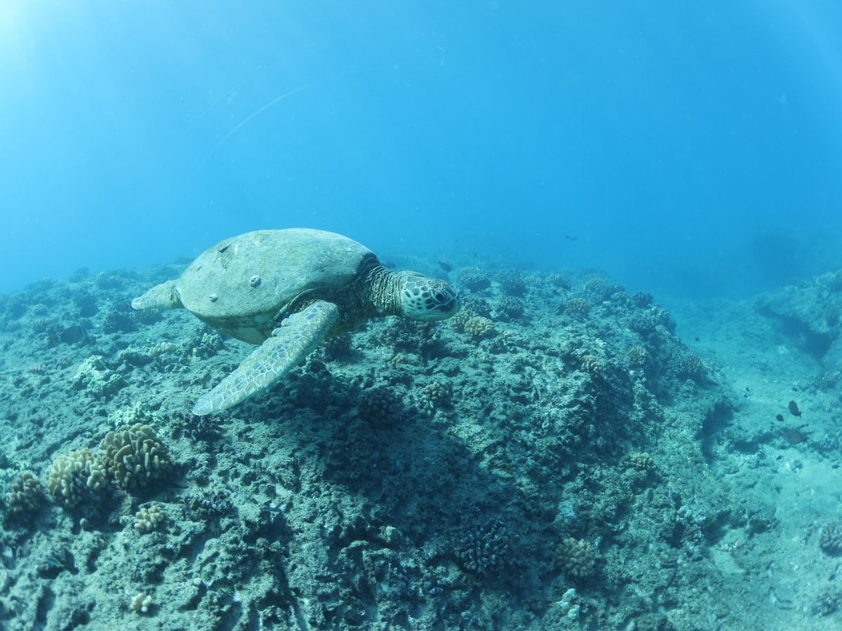 次の目的、海ガメとシュノーケリングは、海に入ると、すぐ近くに海亀がいて、赤ちゃんもいたりしつとても感動しました。