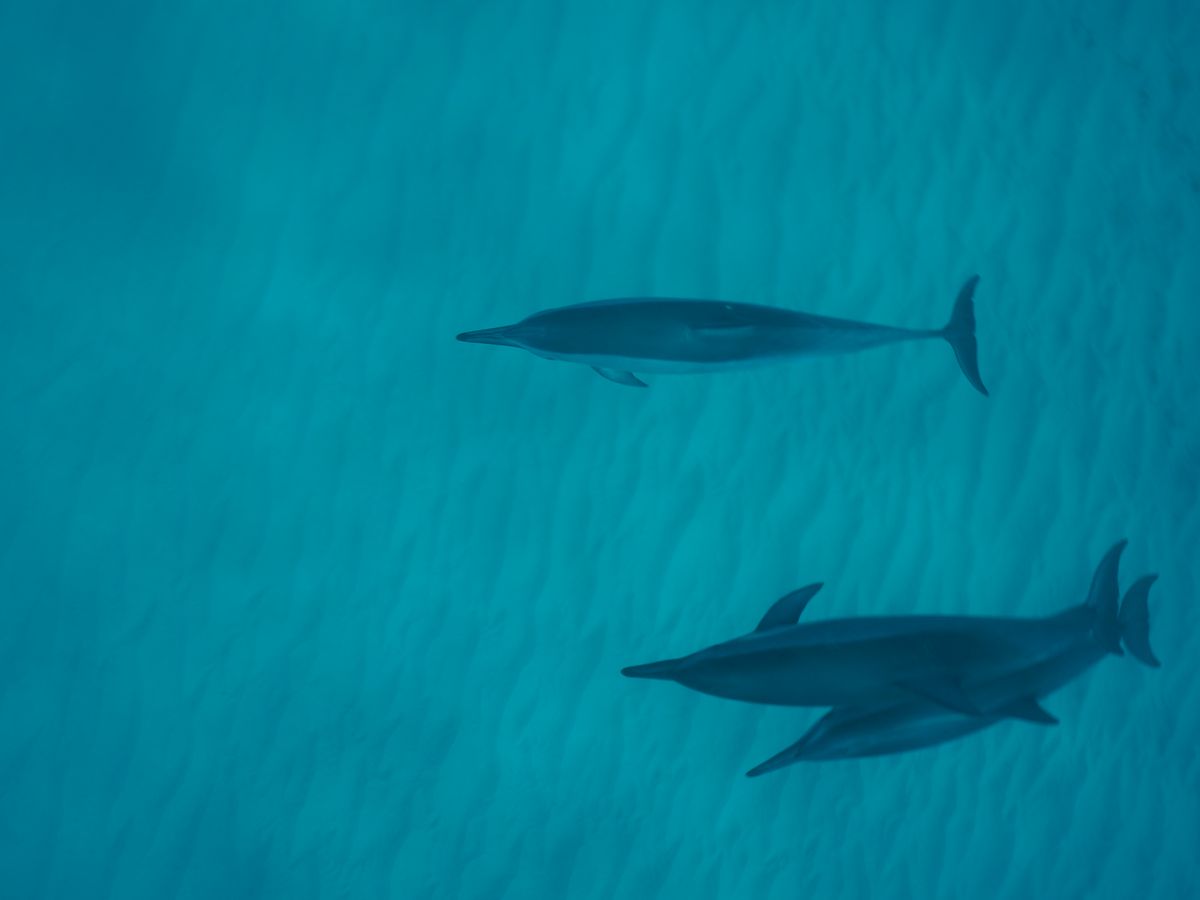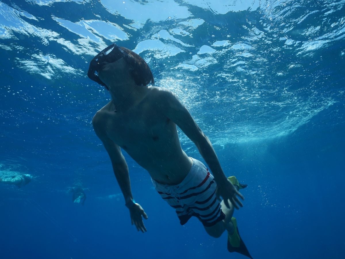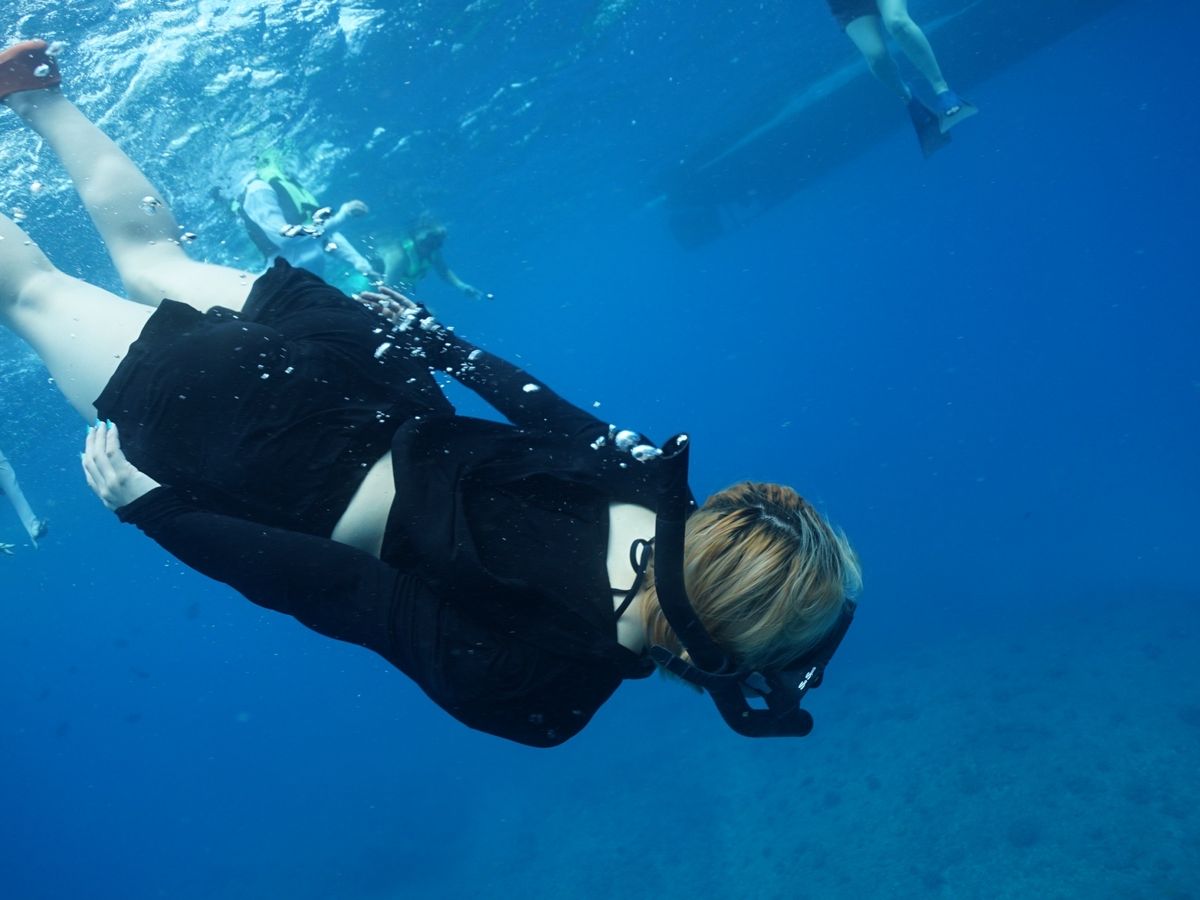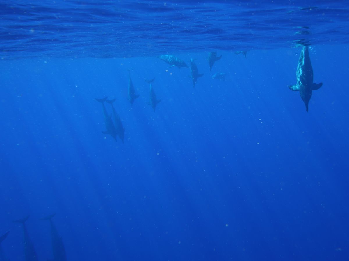 ガイドさんのお陰で数度潜るチャンスをいただき、水中でイルカを見た時はとても興奮しました!でもすぐに逃げてしまうので、一緒に泳ぐというより、必死にイルカを探すというイメージでした。
