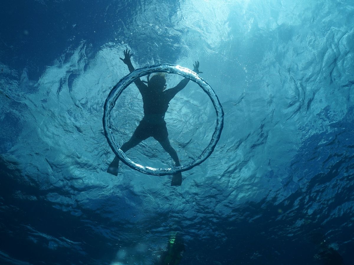 イルカと一緒に泳ぐというよりは、イルカが通り過ぎるのを上から眺める感じかな。