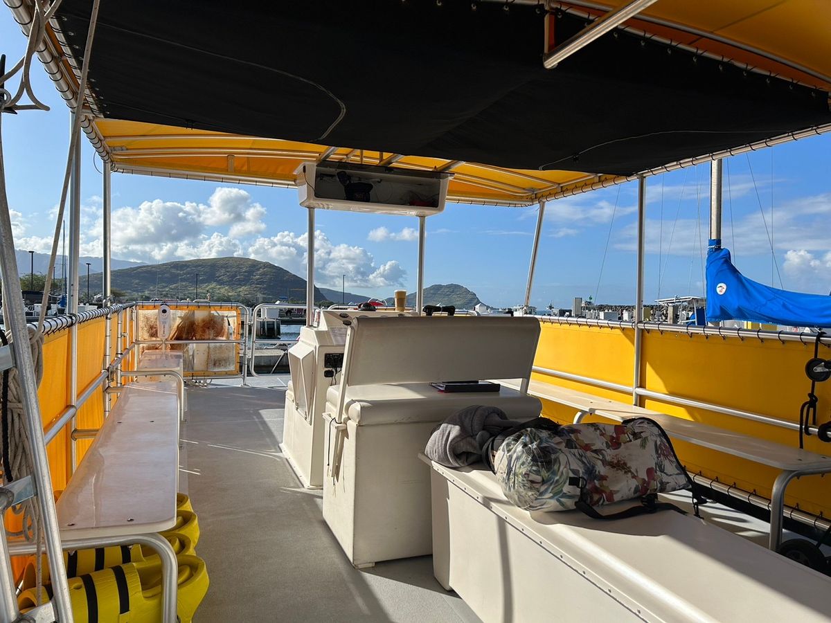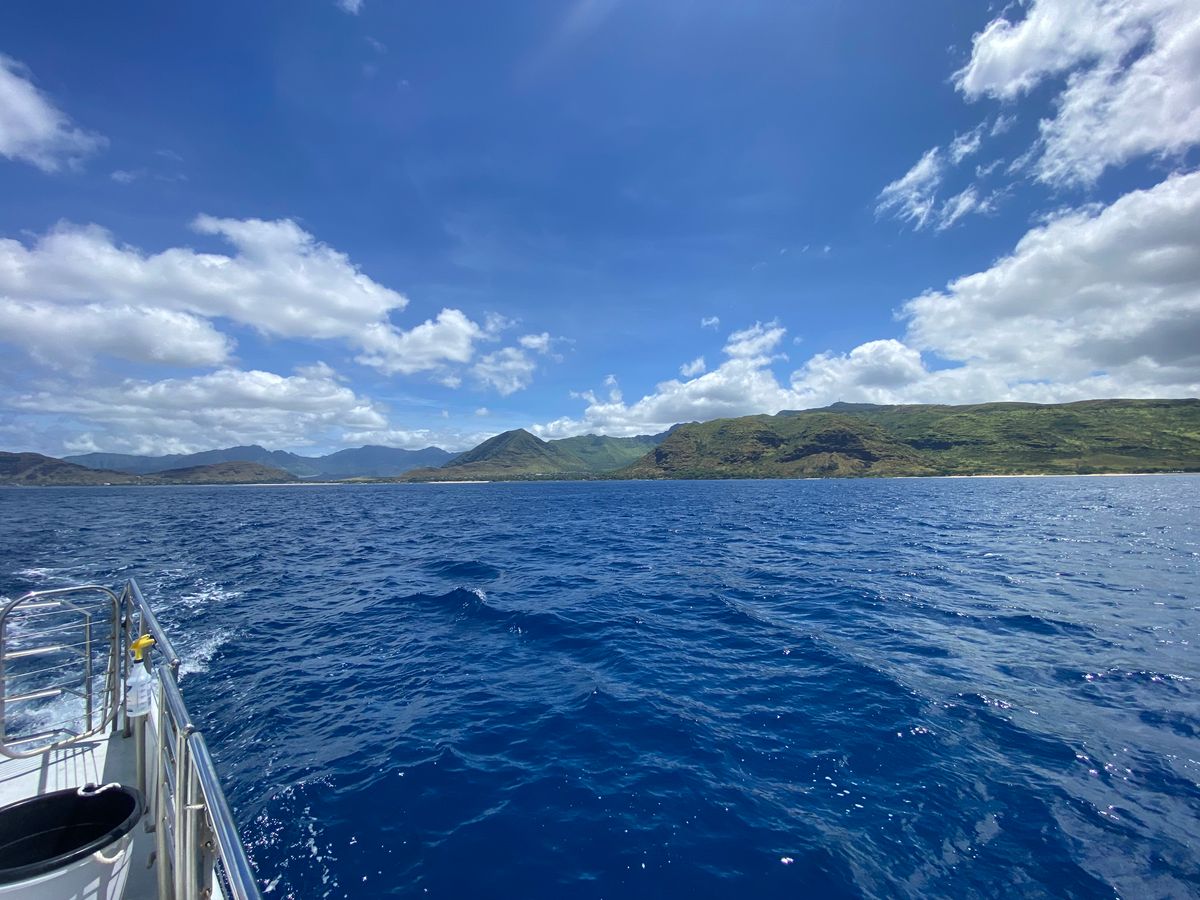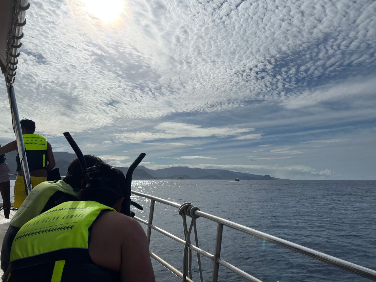 雨季が明けていないこともありワイキキの方は雨でしたが車で移動すると天気も晴れていて、船に乗っているだけで癒される景色でした。