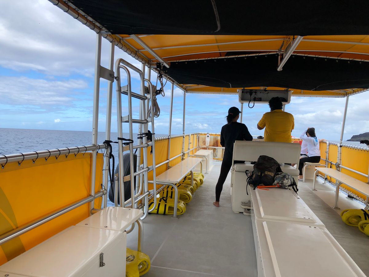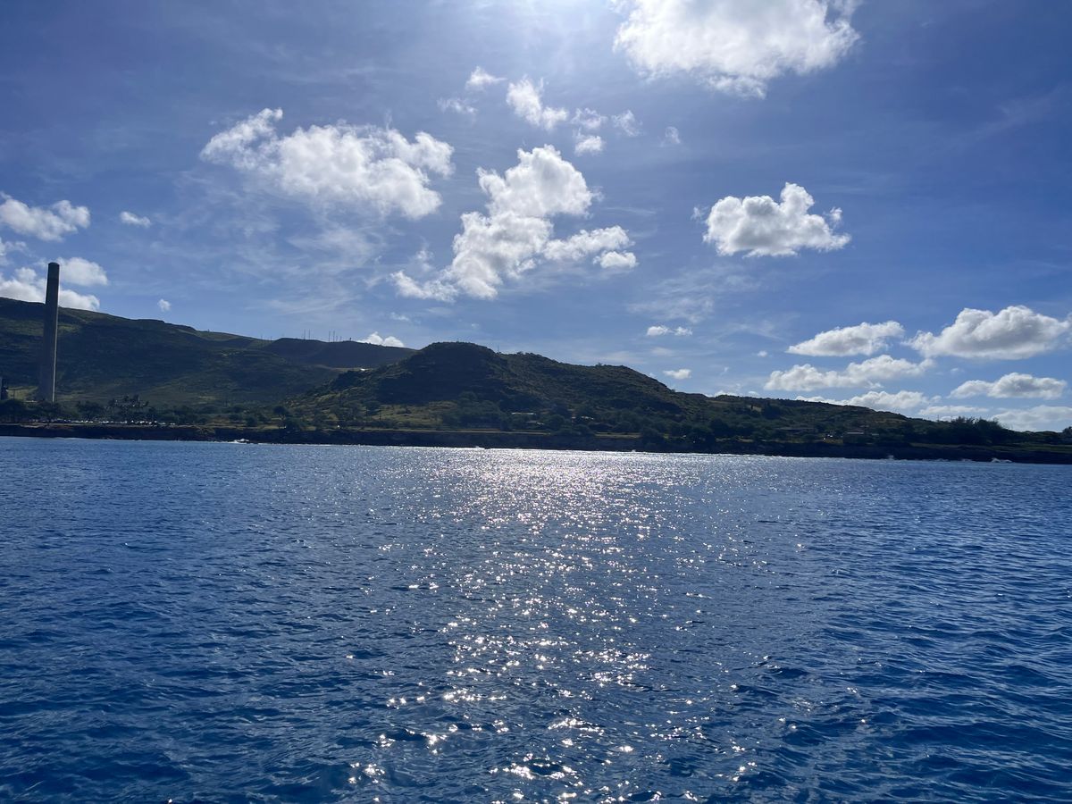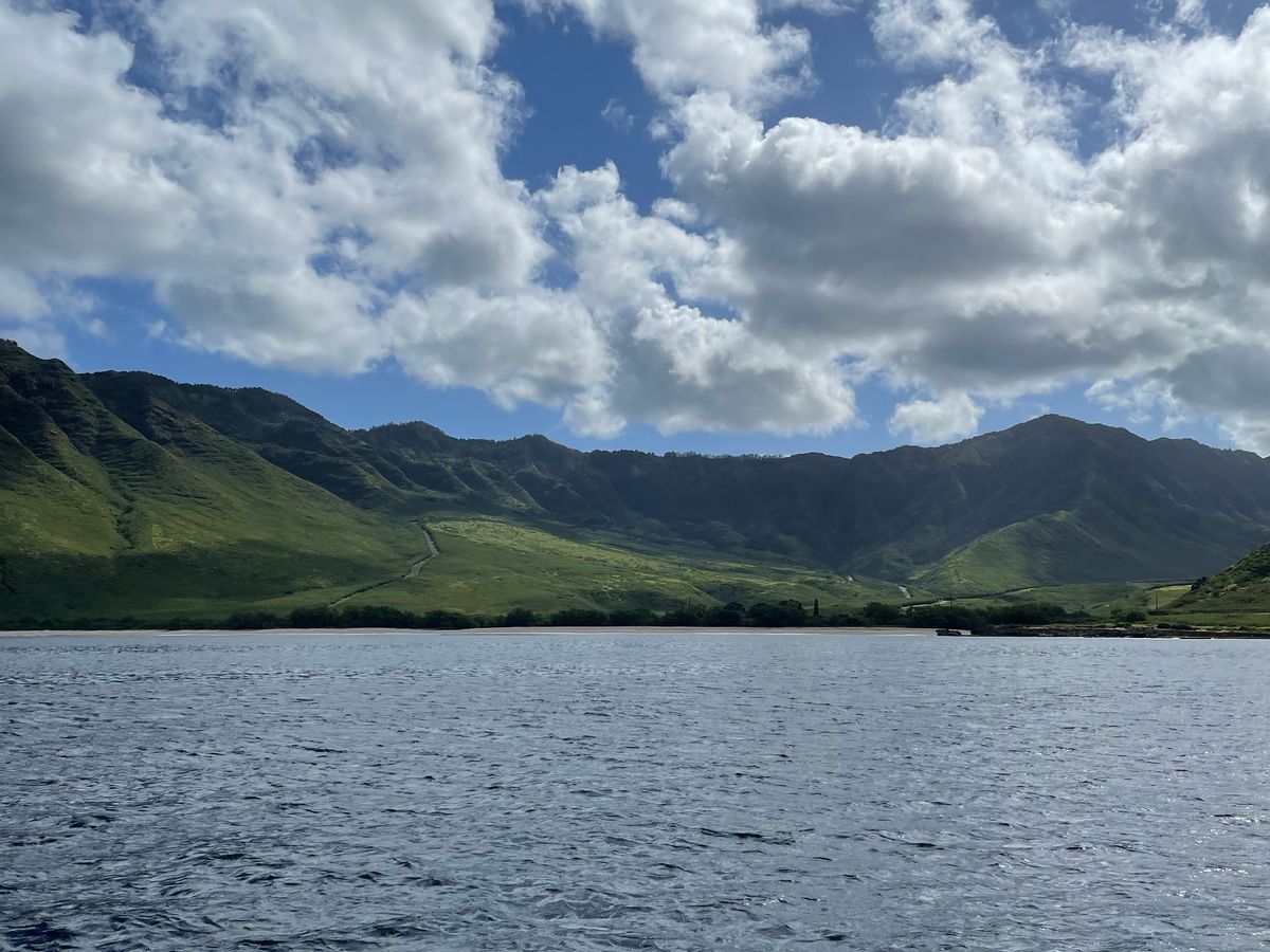 雨季が明けていないこともありワイキキの方は雨でしたが車で移動すると天気も晴れていて、船に乗っているだけで癒される景色でした。