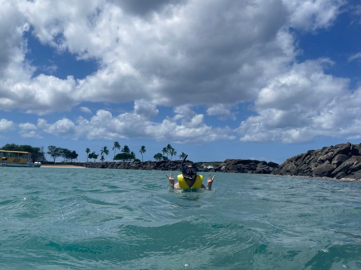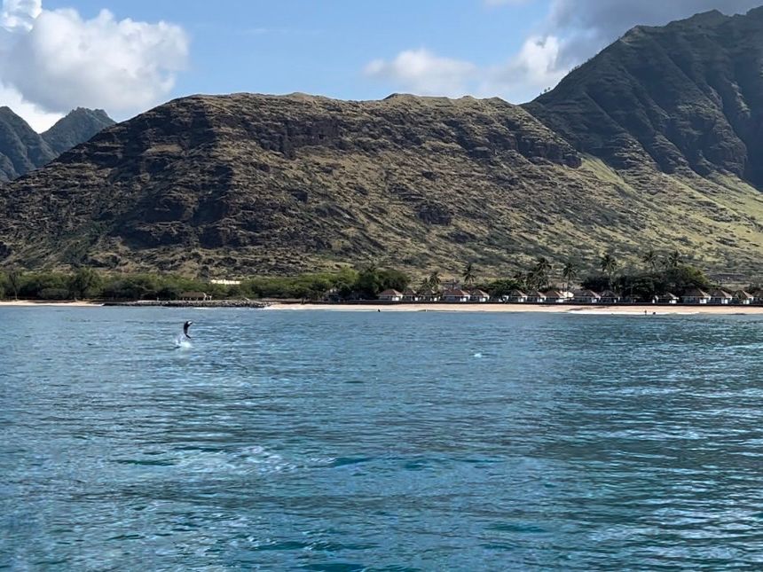 ワイキキの街中とも全く違う、圧倒的な美しい大自然の中、イルカが沢山泳いでる姿を間近で見れました。見てるうちに、イルカがジャンプを何度もしてくれたり、本当に可愛くて、ずっと感動してました。