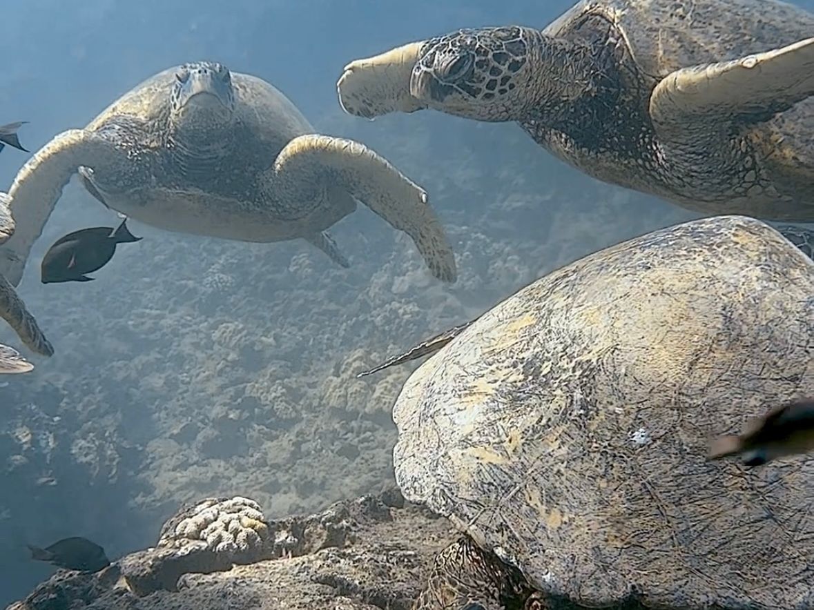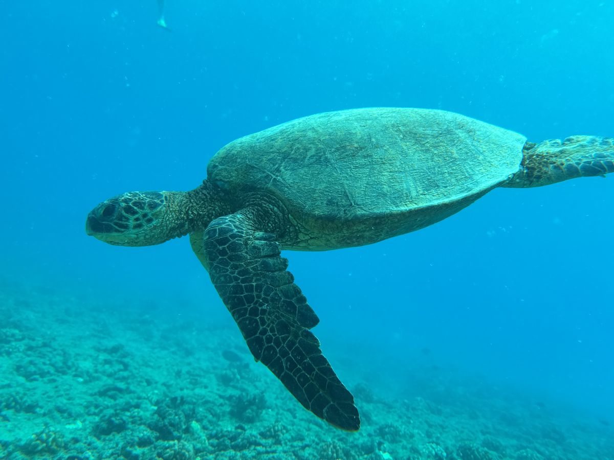 また、アオウミガメが酸素を取り込むために水面に上がってくる姿は、もう感動以外の何者でもなく、水族館では決して体験できない貴重な思い出ができました。