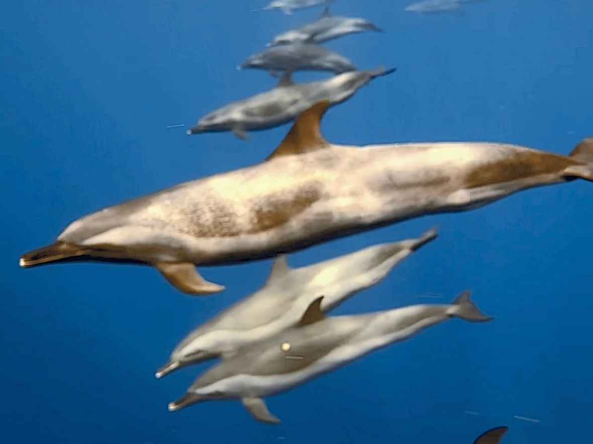 バナナボートを楽しんでいたらマダライルカが出てきてくれて、マダライルカもみることができました。50頭くらいいる大きな群れで、前方や下や後ろをたくさんのイルカが泳いでいく姿は感動でした。