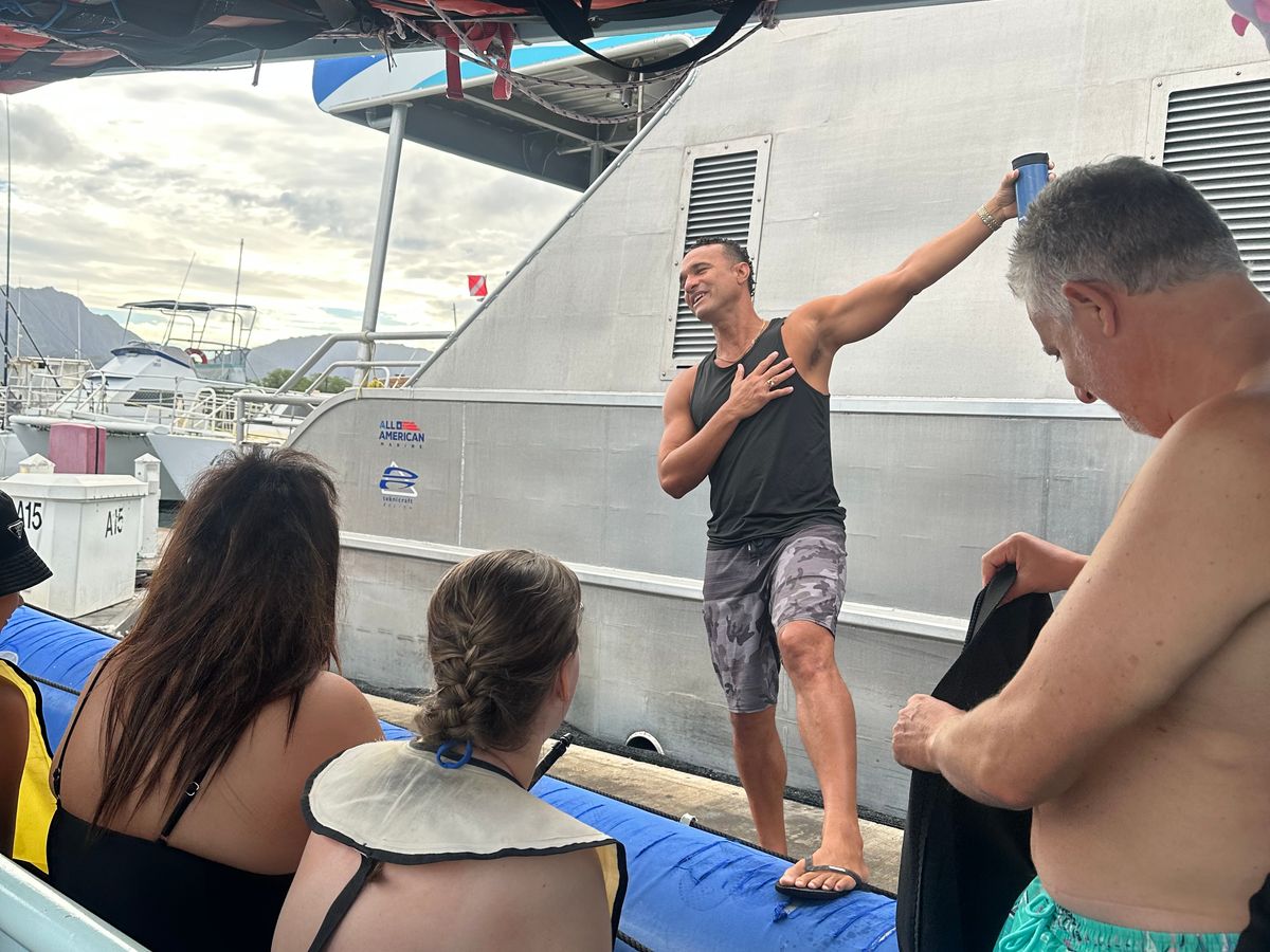 とはいえ、イルカやウミガメ、美しい景色、そしてスタッフのダンスや歌を楽しんでいただけたと伺い、私たちも大変嬉しく思います。特に男性フラをご覧いただけたこと、思い出のひとつになっていれば幸いです。