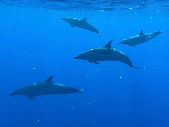 1回目の入水の時は、水中でイルカを見ることができなかったが2回目にガイドのジュリーさんが私をイルカがいる方まで引っ張って行ってくれて念願のイルカを眼の前に見て一緒に泳ぐことができました。スタッフの方々も明るく移動中もとても楽しかったです。