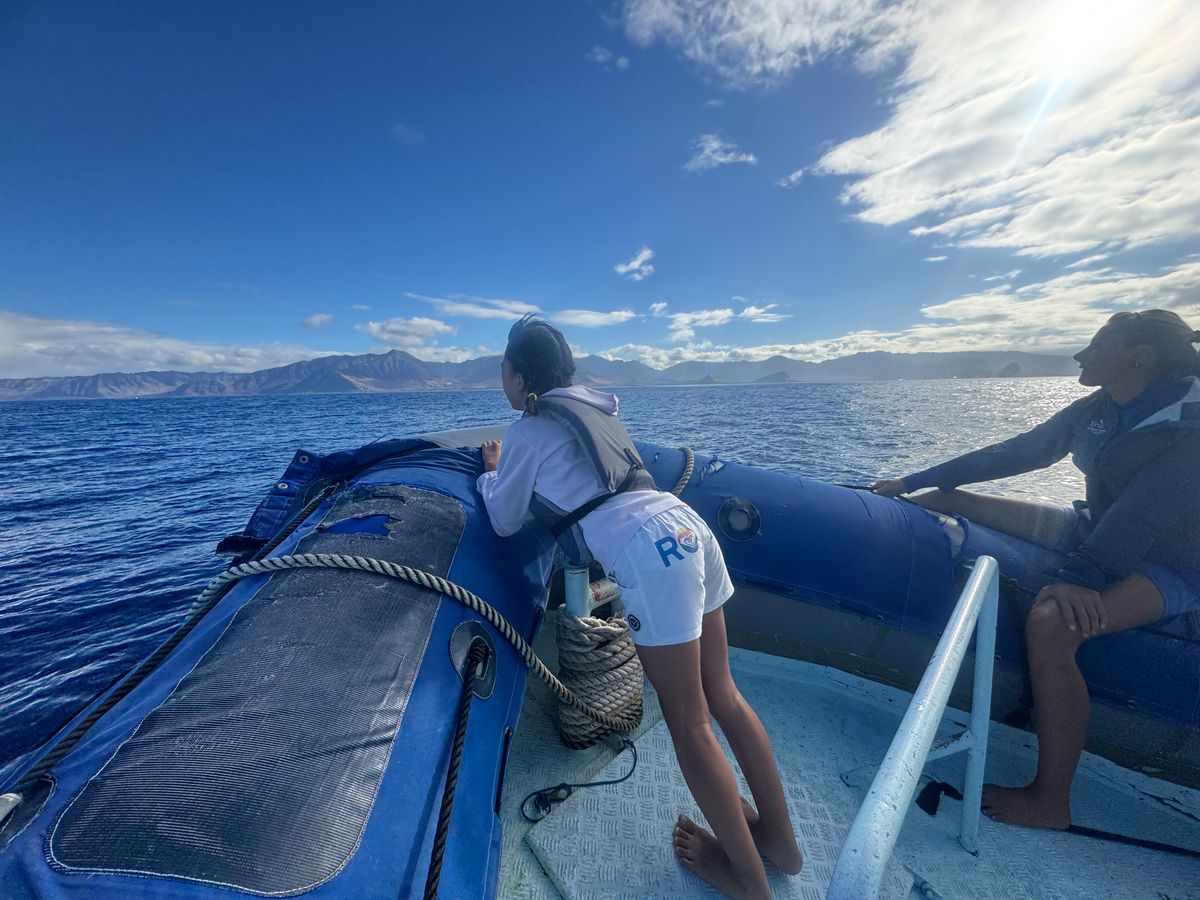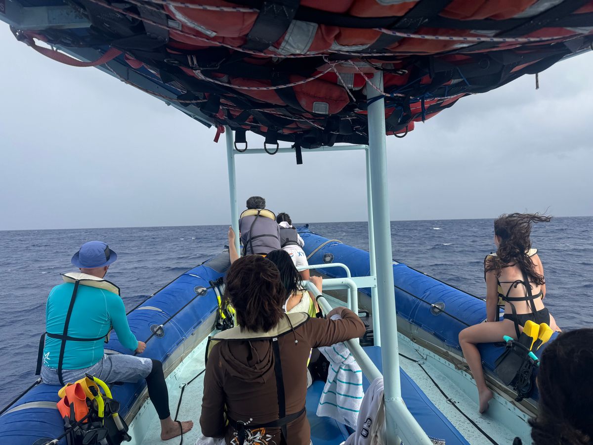 イルカ大学と中学のみんなで集まり、それぞれの船でイルカ探しに向かいます。10月下旬で水温は温かかったですが、上がると寒かったりするのでウェットツース(現金$10)がおすすめ。