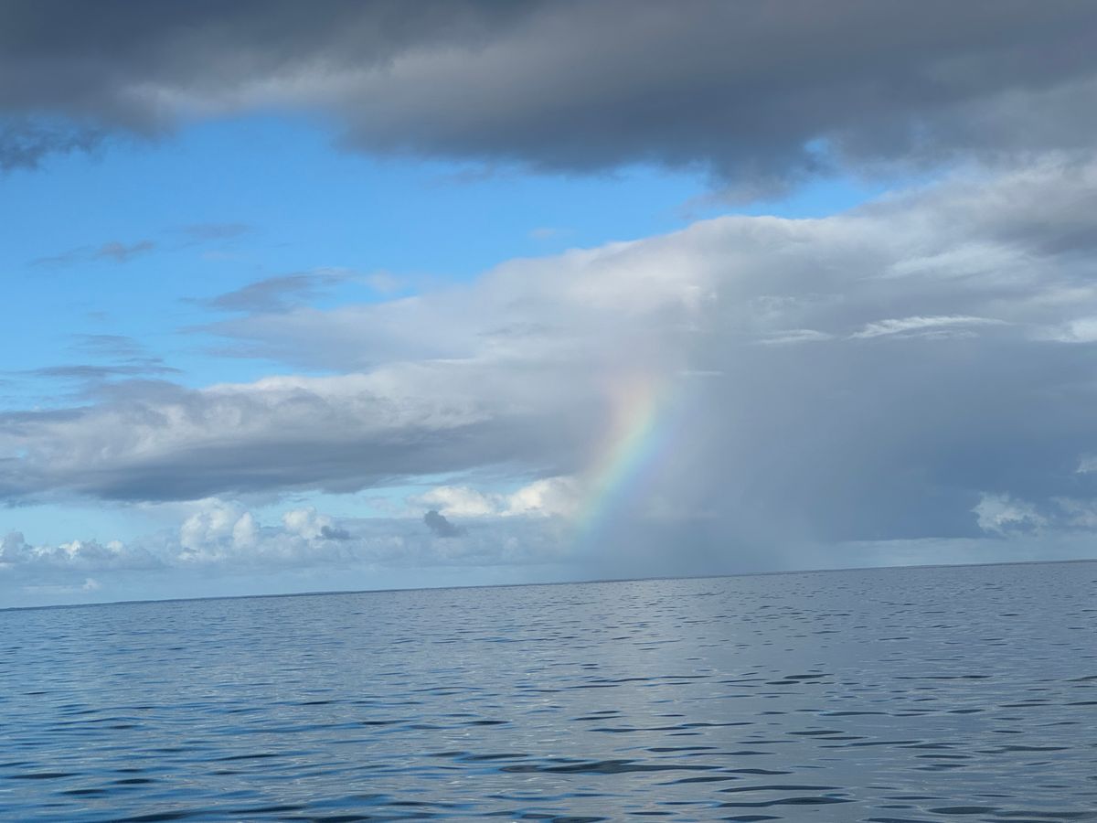 ただイルカさんにはなかなか会えず、雲行きも怪しくなってきて気持ち良かった風がだんだん寒くなってきてしまいました。たくさんのイルカが集まってる場所に着いた時、雨も降っていて、私たちはかなり寒くなっていました。けどその時イルカは200頭ぐらいいたそうです!そんな見えることはなかなかないそうです!