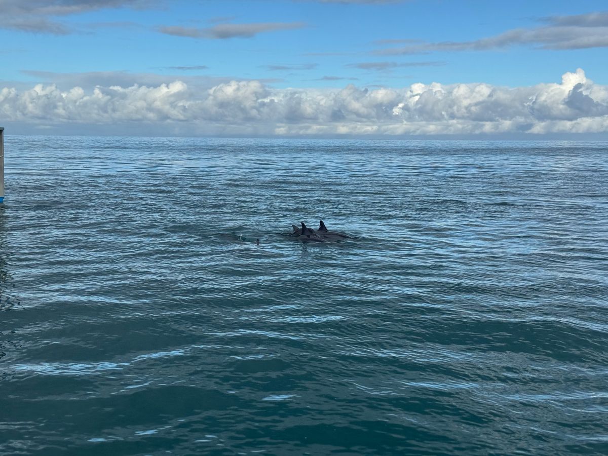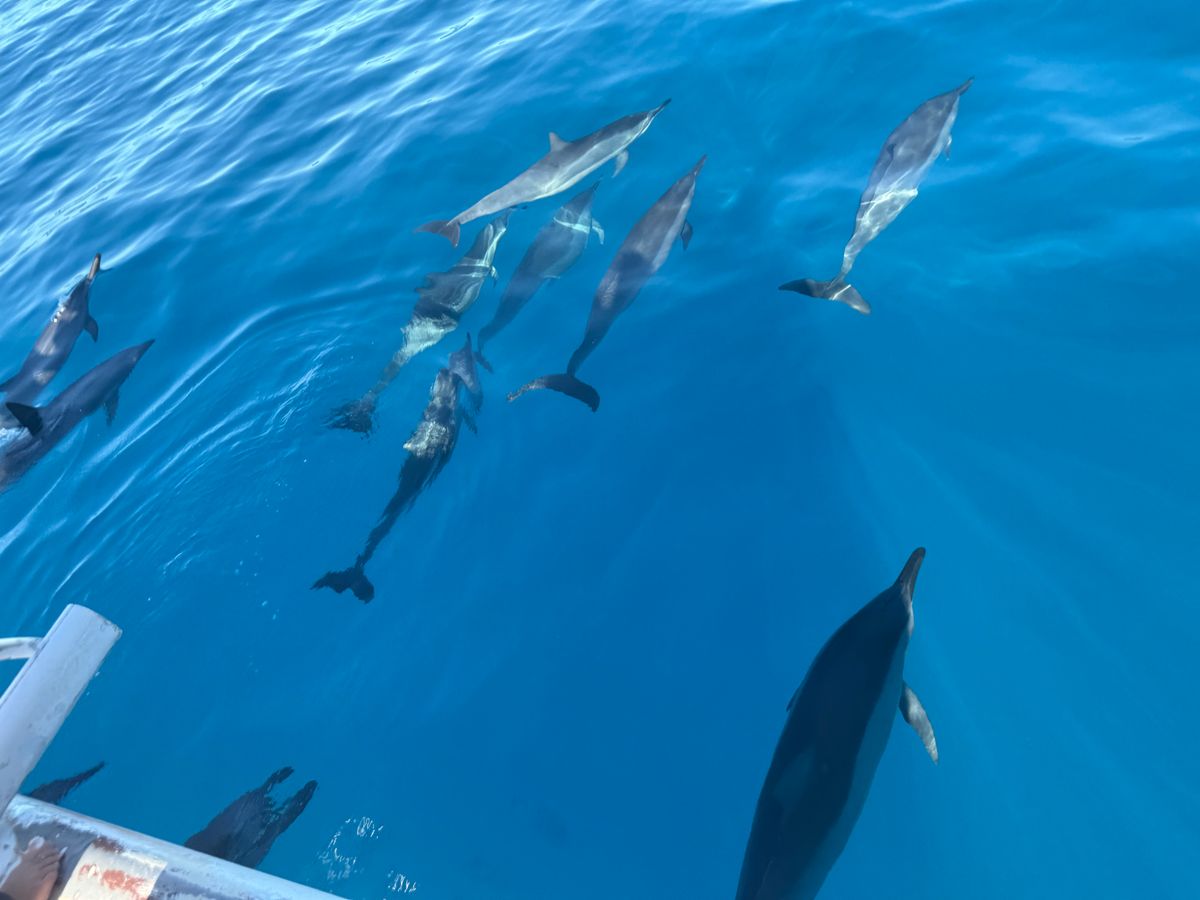 わたしたちはそこまで近くでイルカを見れなかったのですが、しっかり同じ海で視認することができました。