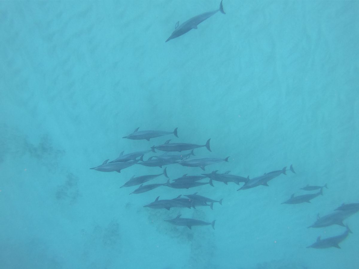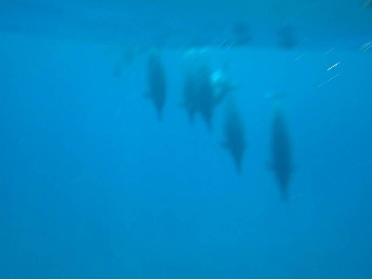 私たちは海に出てすぐに群れに遭遇し透明度も高かったので沢山のイルカの上を泳ぐことができ満足でした!