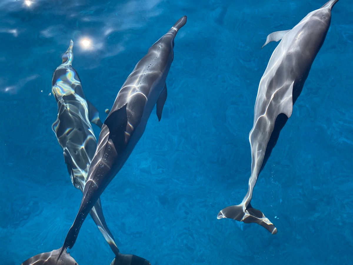イルカたちはずっとその場にいたようなので、もう少し長く泳いでいたかったです。