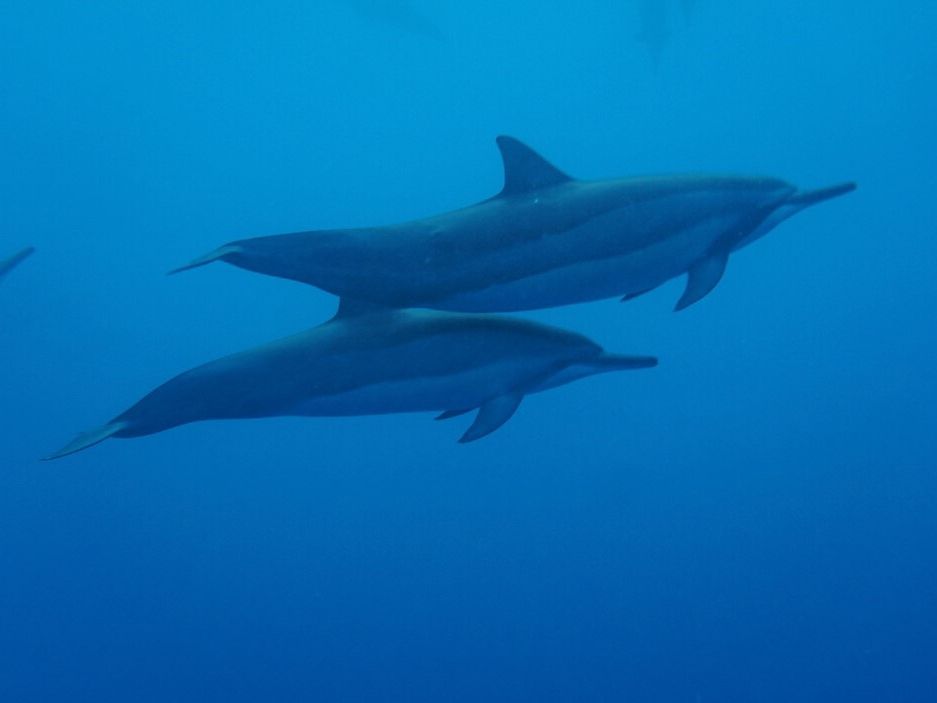 しかし、当日は結構な高波となったため、妻をはじめ結構な割合でツアー客が船酔いでダウン。また天候のためかイルカは我々が泳いでいる最中に高速でかなり下の方を通り過ぎて行ったのみで、「一緒に泳ぐ」ということで期待していた状況からはかなりかけ離れていました。一応、船での移動中に数頭かなり近づいてきてくれた時がありましたが、一緒には泳げませんでした。