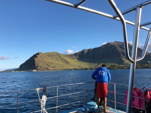 10月24日に参加しました。船でポイントまで出て海に入ってイルカがこちらに来るのを待ちました。水面に顔をつけると水中からキィキィとイルカの鳴き声が聞こえてきて、スタッフさんの指示する方向に向かうと目の前にイルカの親子連れが通り過ぎて行きました!その後何度も私たちの方にぐるぐると回ってきてくれて、そのうち何度かは私の体の真下をイルカ達が通って行きました。イルカと一緒に泳ぐ貴重で素晴らしい経験ができ、本当に楽しかったです!!迷っている人がいたら絶対に参加してほしいです。スタッフ全員がみんなにイルカを見てほしいという気持ちが強く、シュノーケルの付け方、水の中での動きなども船上でしっかりレクチャーして貰えます。ラッシュガード付プランにしたのですがオリジナルデザインがめっちゃかっこいいのでオススメです。せっかくハワイに来るなら絶対に体験して欲しいです!!!