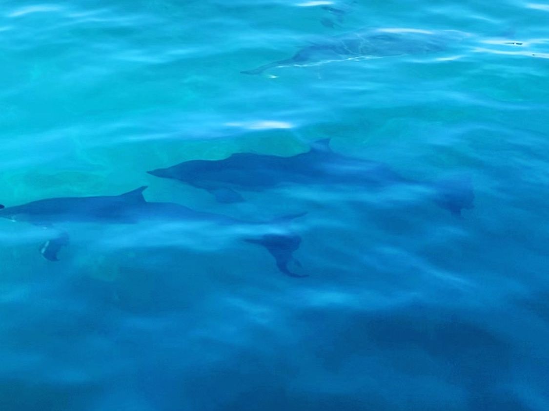 イルカを2回目のシュノーケリングで見ることができました。イルカは早いのでしっかりクルーの先頭についていく事が見るコツかなぁと。群れで泳ぐイルカはなんとも言えない感動でした。子供のイルカもみれました。また船からもウォッチングしていたらスピンジャンプしてくれました。少しだけクジラも見ることができました。自然に触れられて感動です。