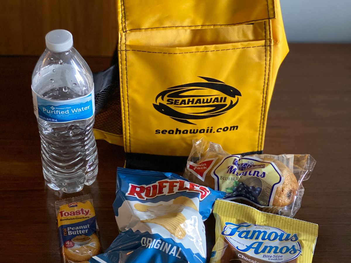 ・軽食つきが有難い。お口直しのパイナップル、スナック、チーズバーガーが配られます。酔った人にチーズバーガーは追い討ちでしたがもちろんテイクアウト用の袋もくれます。私は酔ったのでパイナップル、レモンウォーターに助けられました。