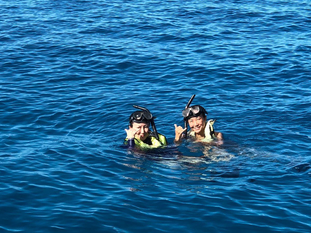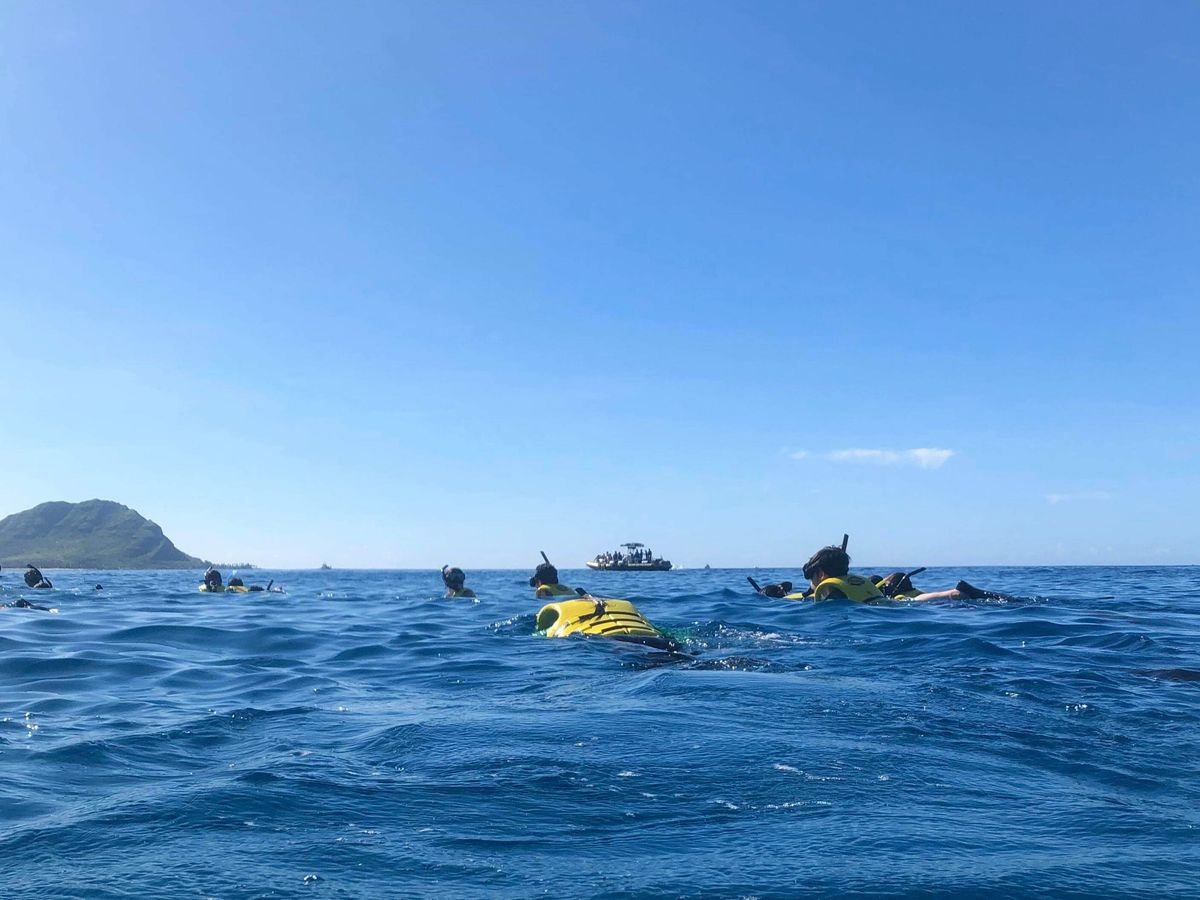 そして、カメがたくさん訪れるスポットでは自由に泳いでいい時間が30分も用意してくれて、真っ青な綺麗なハワイの海の上でのんびりと浮かぶ時間は貴重で気持ちよく最高の思い出となりました。