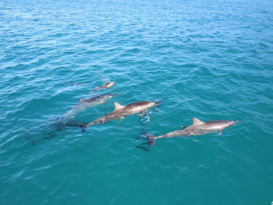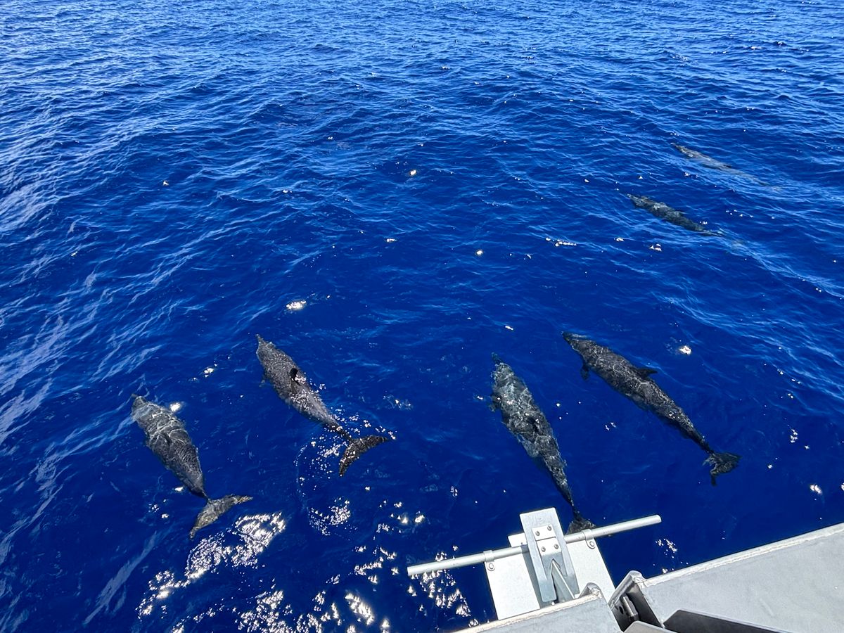 今まで複数回イルカツアーに参加してきましたが、過去イチ近くで泳ぐイルカの姿を見ることができました。圧巻・感動でした。