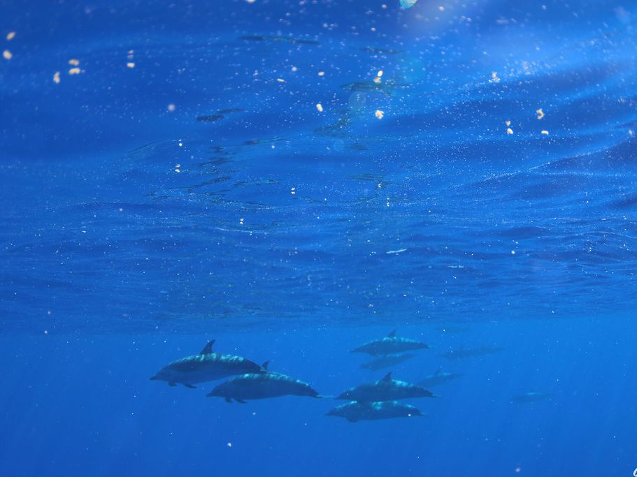 船からイルカを見るではなく、実際に自分もシュノーケルをつけて、海の中でイルカを見ることができます。
