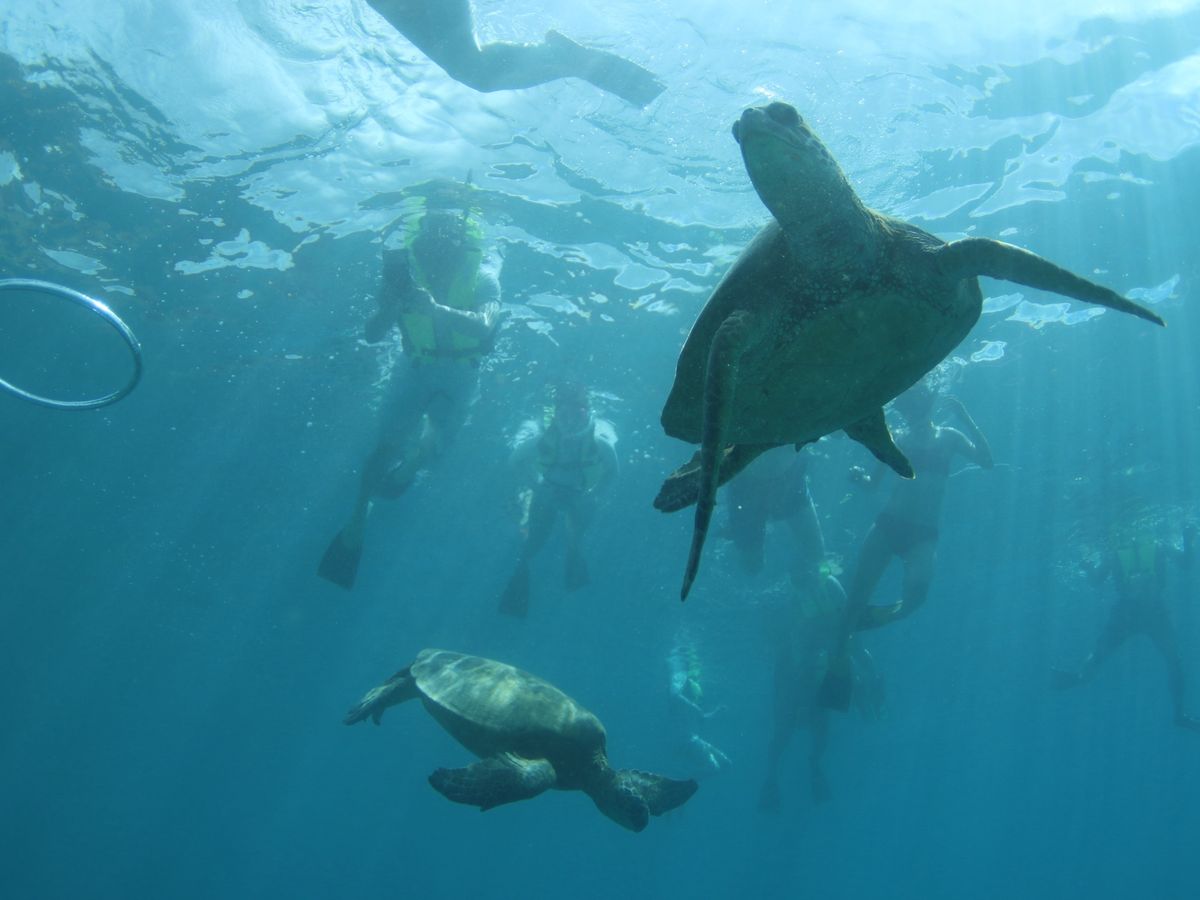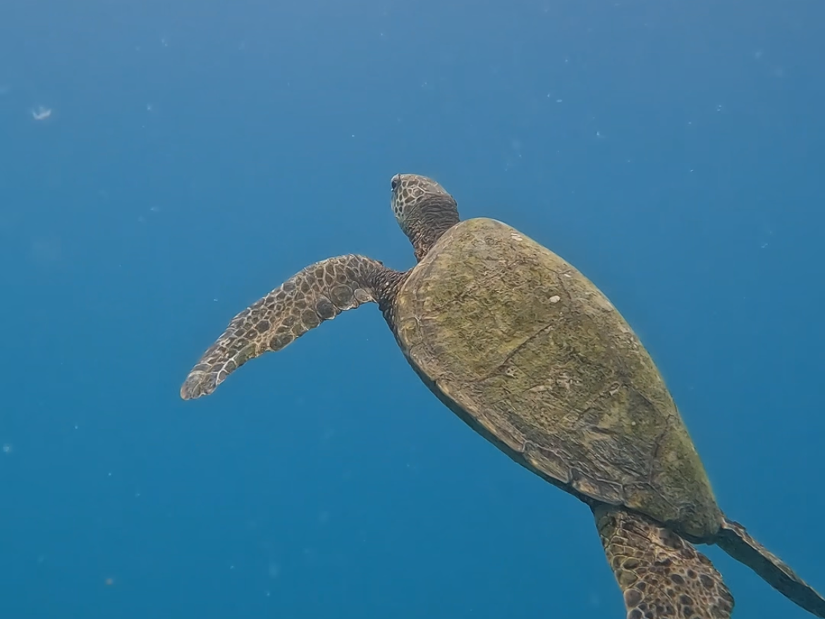 その後移動した浅瀬のシュノーケルスポットでは、下にお魚と、ゆっっくり泳ぐウミガメ(ホヌ)達が。ホヌは時々息をしに海面へあがってきてぽこっと頭を出します。それがとても愛らしい。