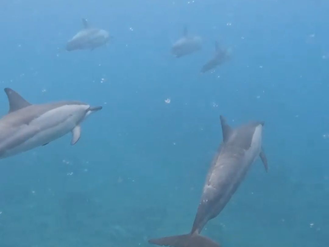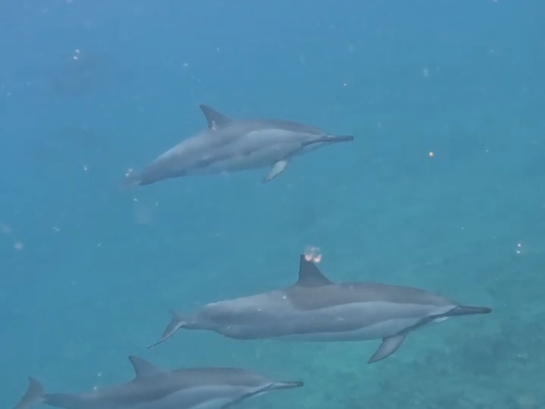 イルカ※私は水中では、間に合わなかったのですが、船の上から群れを確認することができました。
