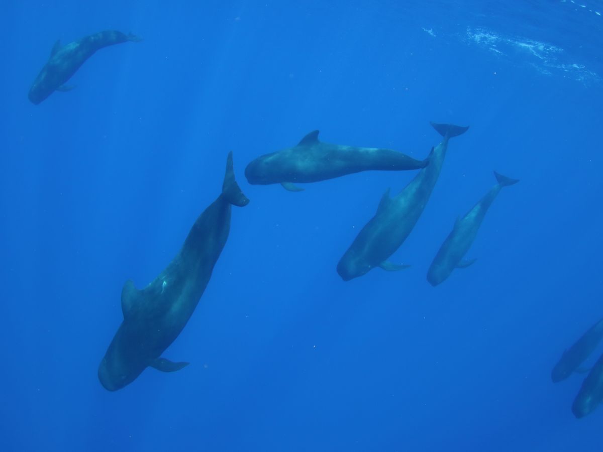 沖に到着して間もなく、コビレゴンドウと言う種類のイルカに出会えました。