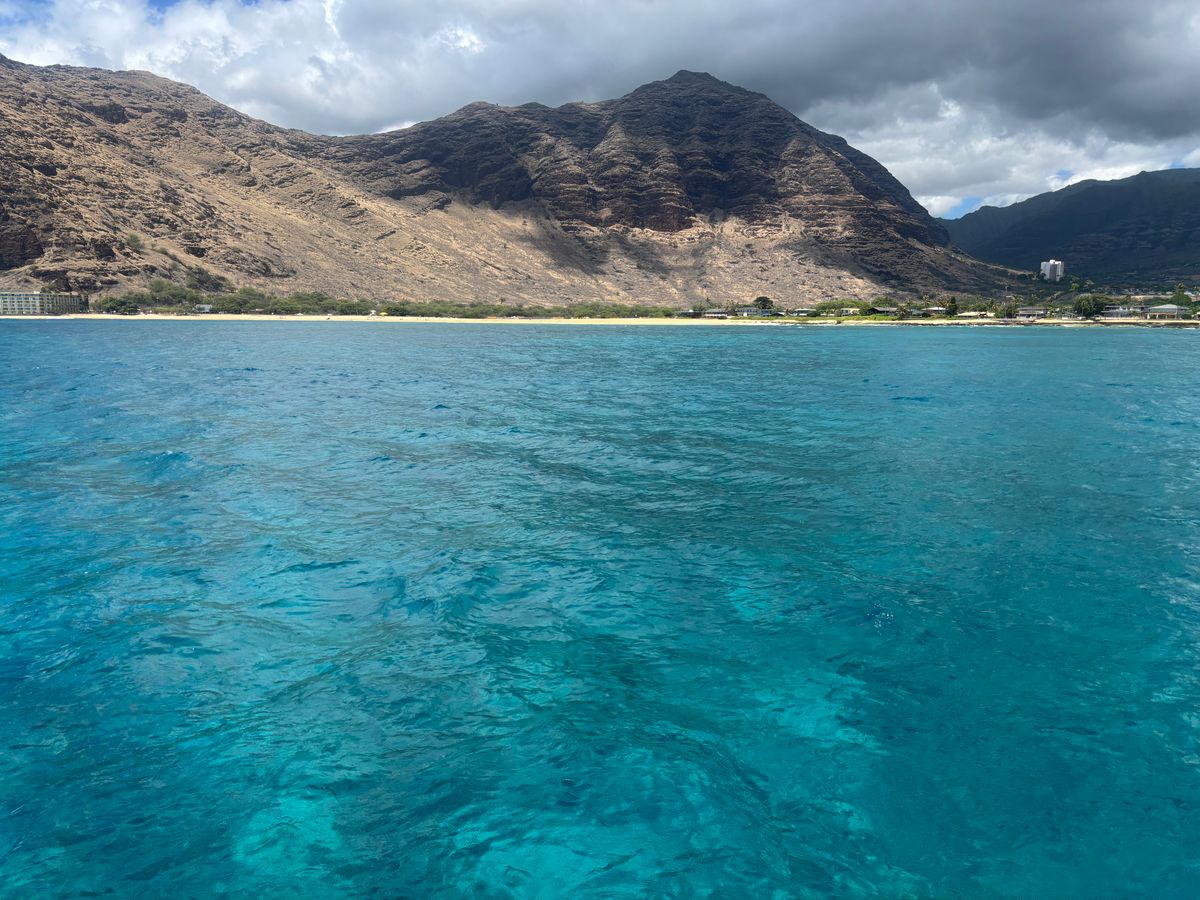 バスの中ではハワイの地理や歴史、イルカの話やマリングッズの使い方などの話をしていただきました。ハワイのことはあんまちゃんと調べずに来たのでとても勉強になってありがたかったです。酔い止めの薬を飲むタイミングまで教えていただけたので助かりました。