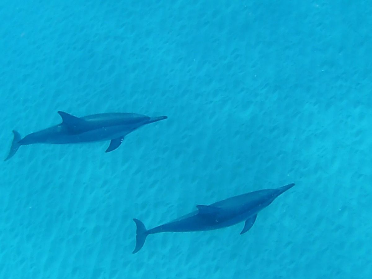 計3回のシュノーケリングのうち1回目と2回目はイルカの群れを探してトライしますが、1回目でイルカに遭遇。