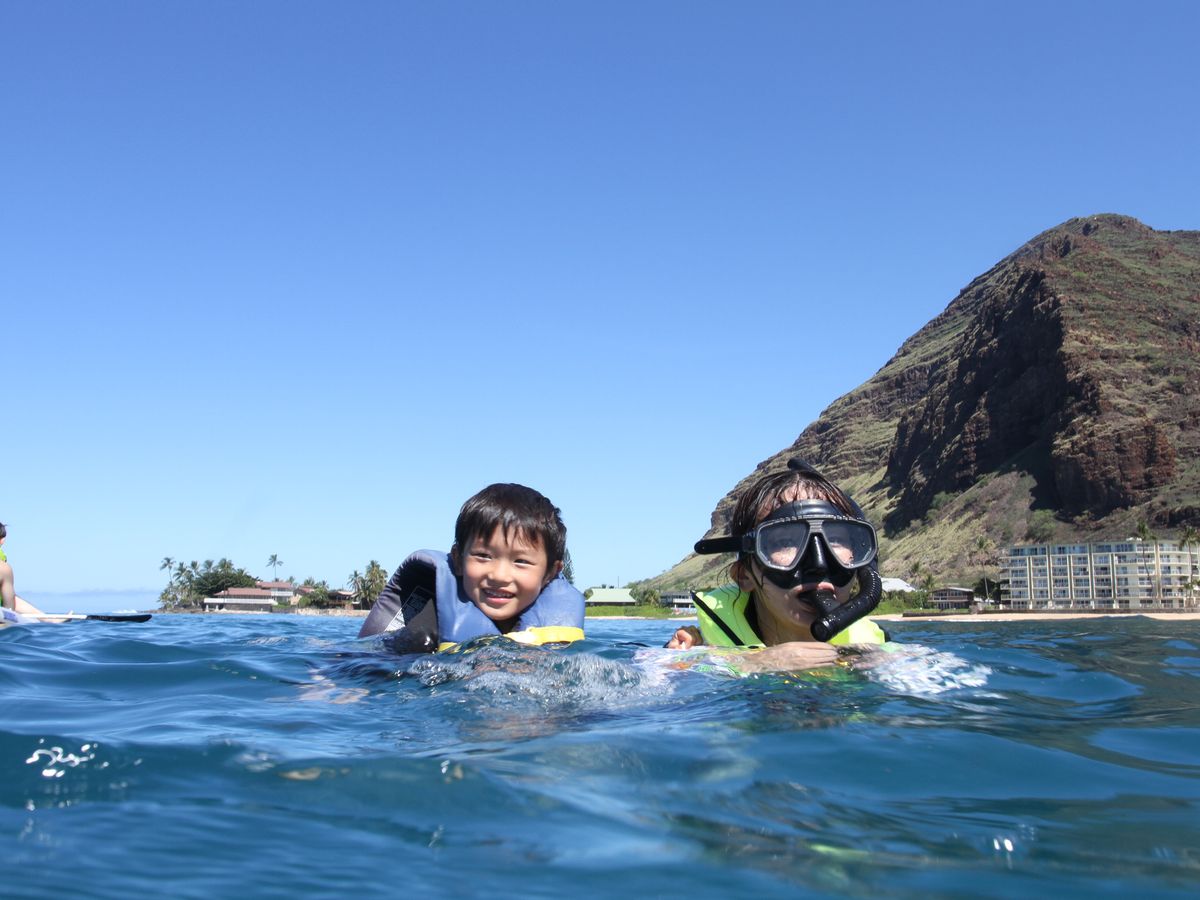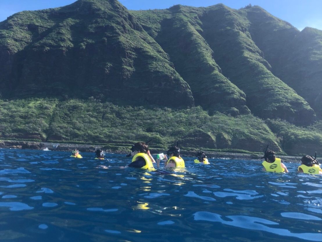 9月のハワイは初めてでこんなに暑いとは思ってなかったのですが、海に入るのにちょうど良い温度でした。でも、もし不安な場合はウェットスーツを借りた方がいいかもしれないです。ちなみに母と息子や娘は借りました。ライフジャケットを必ず着けますが、浮力も増すので泳ぎに自信がない方にお勧めです。