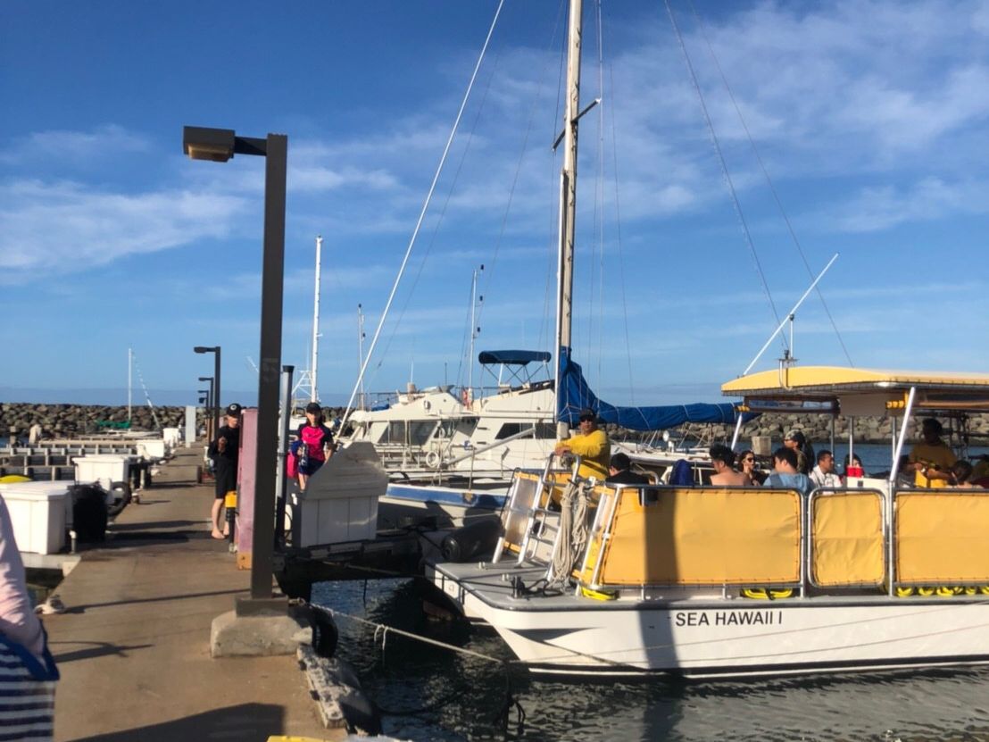 私達は、日本人しかいないツアーでした。こちらは日本人しか予約しないのかな?と思います。行きのバスでは、ガイドの方がツアーの説明やワイキキの情報など楽しくお話しして頂きあっという間に到着しました。息子や娘は足りない睡眠をバスで少し補充して、船に乗りました。