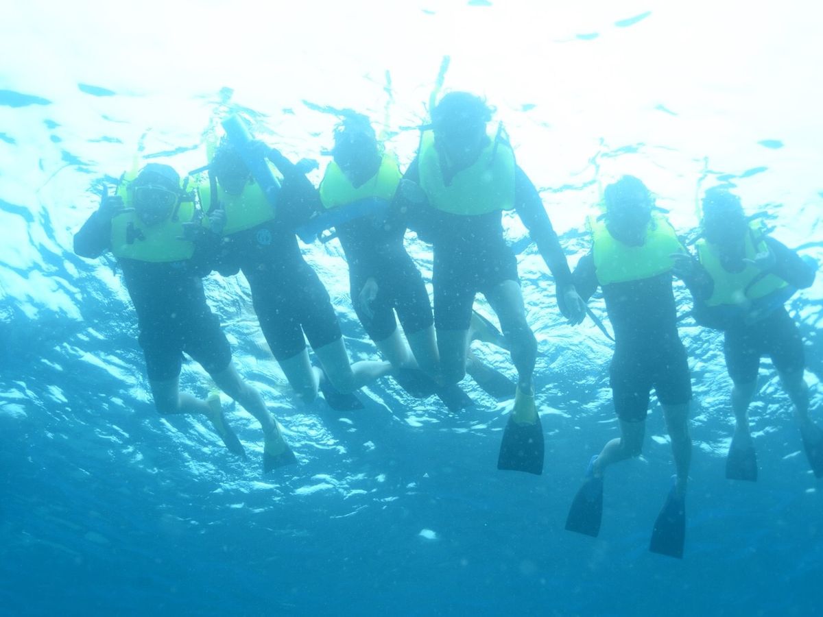とても楽しかったですが、ずっとライフジャケット着用で残念でした。宣伝写真には水中から撮った写真もあったので、その人のレベルや場所によっては外して自由に泳がせてもらえるかと期待していたので、少し残念でした。団体なので仕方ないとは思いますが、もう少し個人のレベルも見極めて泳がせていただきたいです。