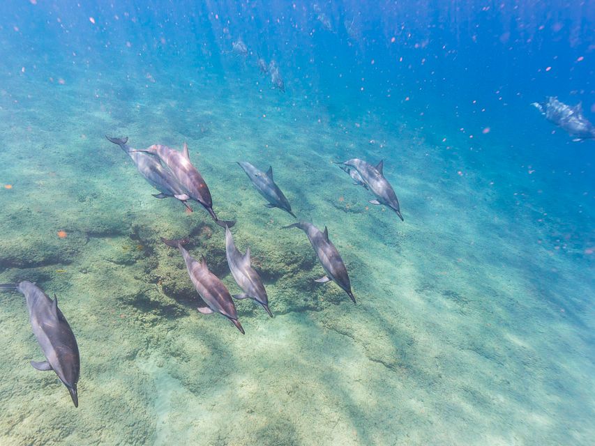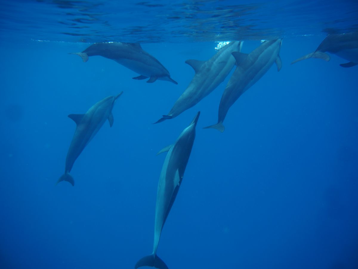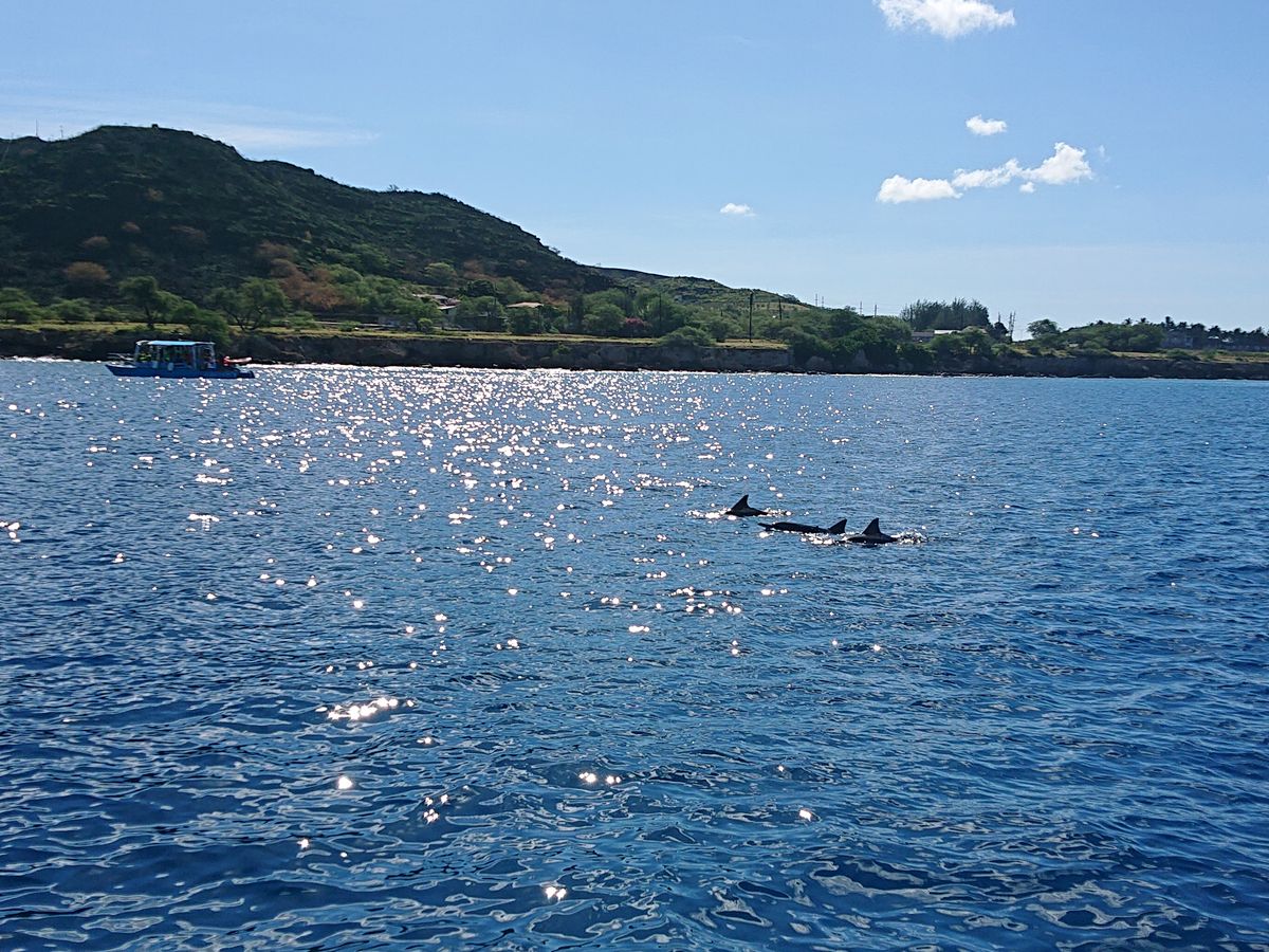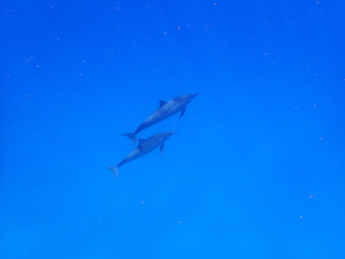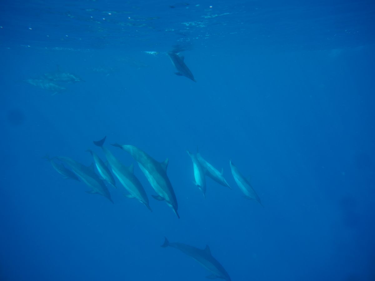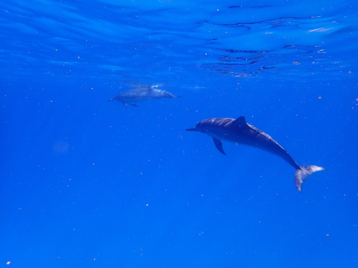 初めはシュノーケリングは小さいころにしかやったことなくいきなり大海原に投げ出されプチパニックしていましたが、徐々に慣れたころにイルカの大群が現れ、鳴き声や子イルカ、ハグしているイルカたちなど、今まで見たころもない野生の姿や音が体験でき、また深い海の上に浮かんでいるのもなかなか体験したことがなかったのでどれも大変貴重な経験をさせていただきました。