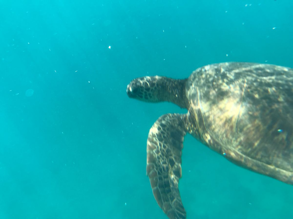 次のスノーケルスポットに到着し、2回目のスノーケルをすると大きなウミガメが5匹おり、息継ぎをしに海面に上がって来る様子も見れました。