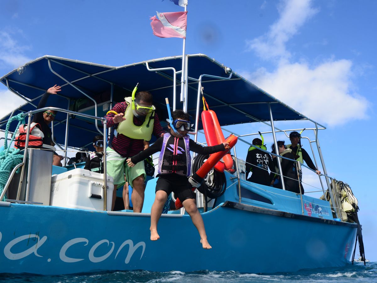 サンゴ礁近くでシュノーケリング等を