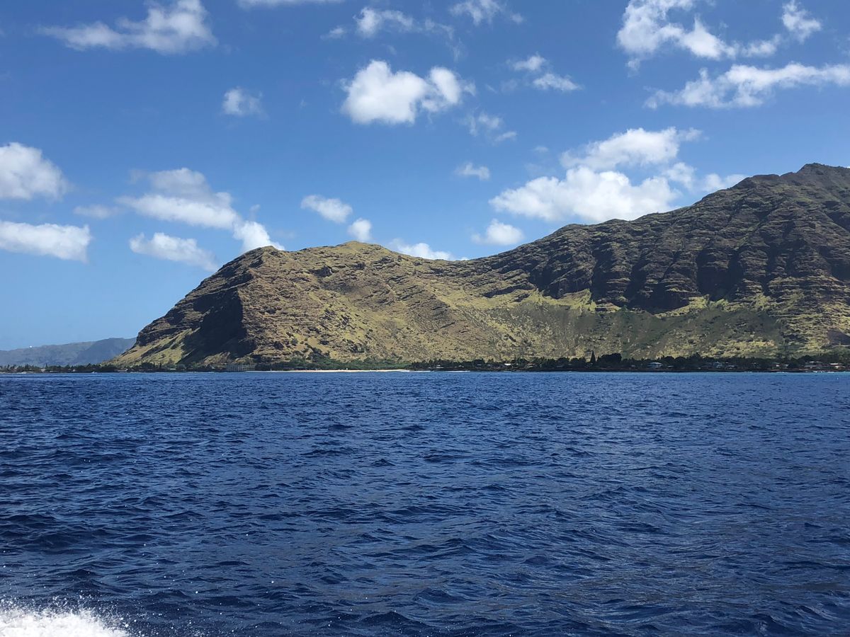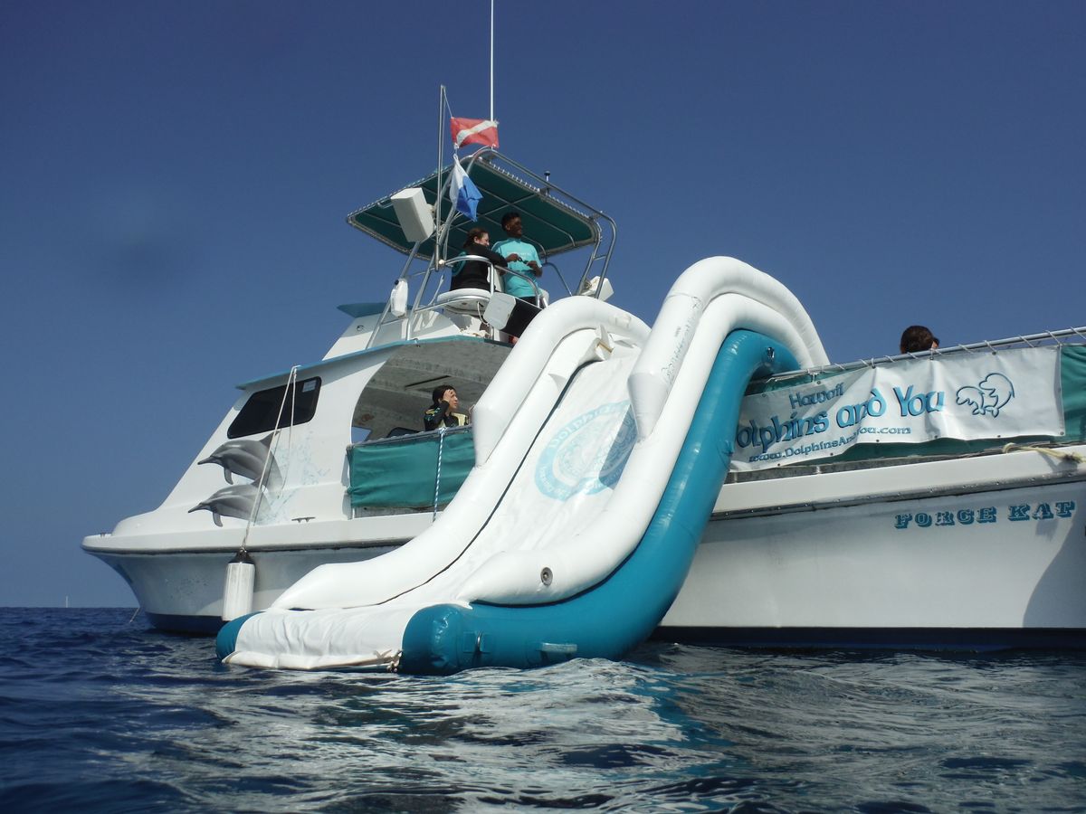 快晴の空の下、生粋のハワイアンの船長さんや明るくて陽気なクルーさんに迎えられて船に乗り込みました。ハーバーを出ようとしたところ、早速ハーバーの中で海亀に遭遇!そしてなんとイルカの群れにも遭遇しました。大変珍しいそうです。その後もイルカの群れに何回も遭遇できて、すぐに海に飛び込むと目の前にイルカが泳いでいました。その光景に心から感動!海の透明度が高いのでしっかりと見ることができました。その後、場所を移動して海亀にも会えました。優雅にゆっくりと泳ぐ海亀にまたまた感動!ハワイの美しい豊かな海、真っ青な空、鮮やかな山の景色に涙が出そうなくらい癒やされました。