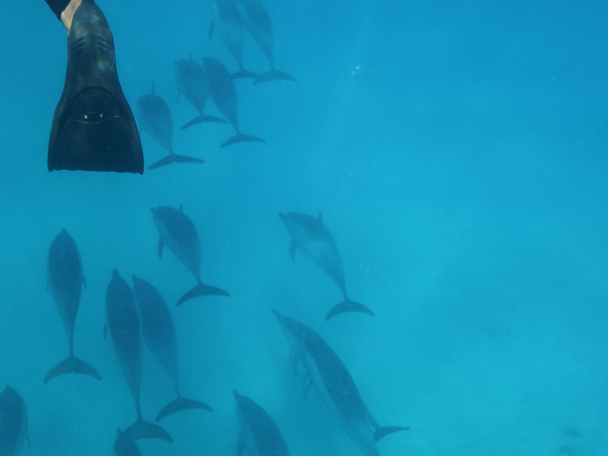 イルカポイントでは自分の真下をゆっくり泳ぐイルカたちに