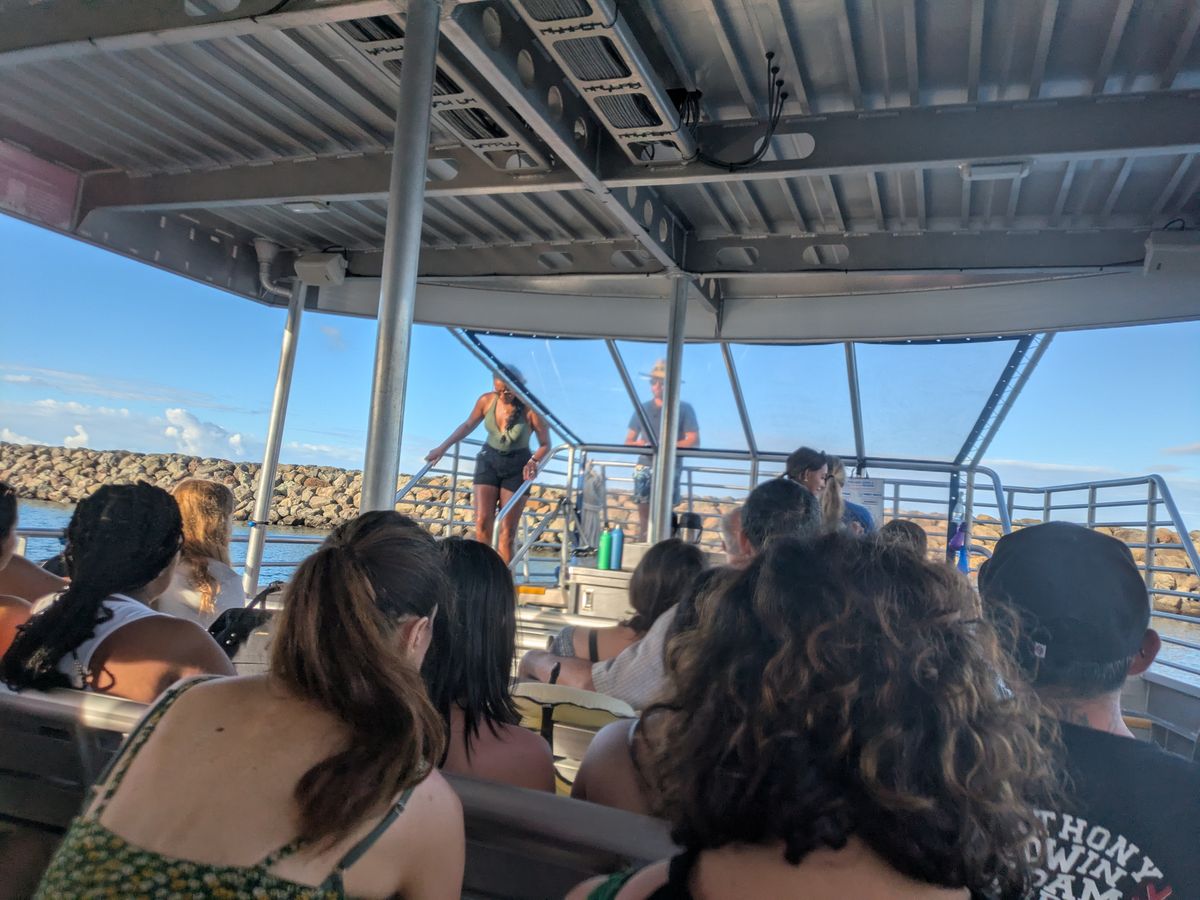 船が小型なので結構揺れます。乗り物酔いが心配な場合は酔い止めの服用は必須かと思います。ハワイの海は朝が1番穏やかとのことで、集合は朝早いですが1番最初のツアーがおすすめです。