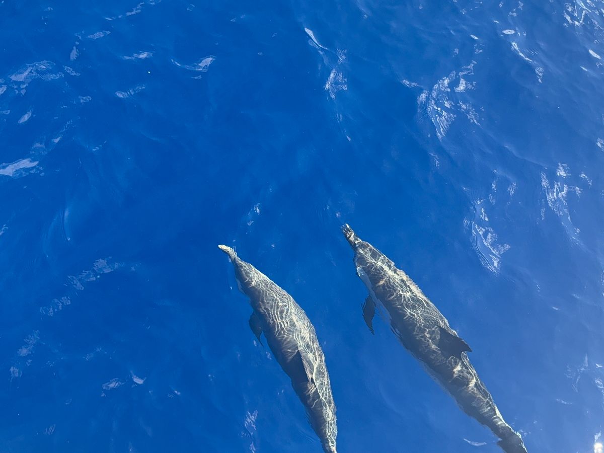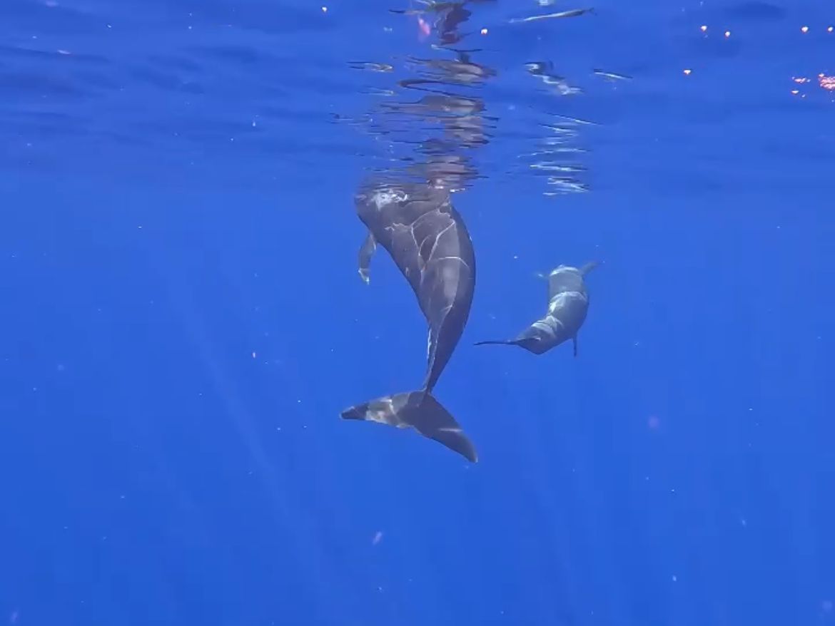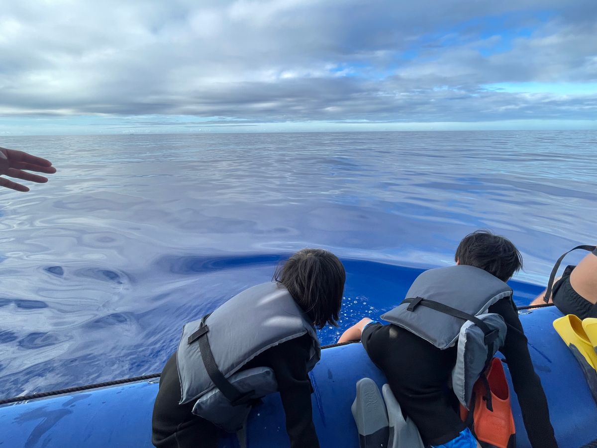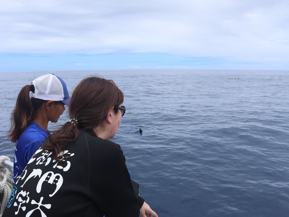 コビレゴンドウとハシナガイルカの群れと一緒に泳ぎ、3時間目には、真下にはウミガメ、色鮮やかな魚たちと一緒に泳ぐ体験。まるで夢の中のような体験でした。ステッフさんと、ブルックさん、スタッフの皆さんも親切で、英語が不安でも龍一さんの丁寧な通訳でとても安心です。ウニをとってみせてもらったり本当に貴重な体験をさせて頂きましたが。酔いやすい方は酔い止めを準備するとさらに快適に楽しめます。小さな不安を吹き飛ばすほどの感動が待っていて、心に刻まれる一生の思い出になりました。家族で体験するのにも最高におすすめです。