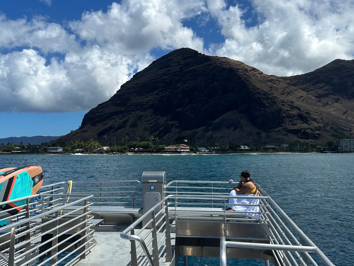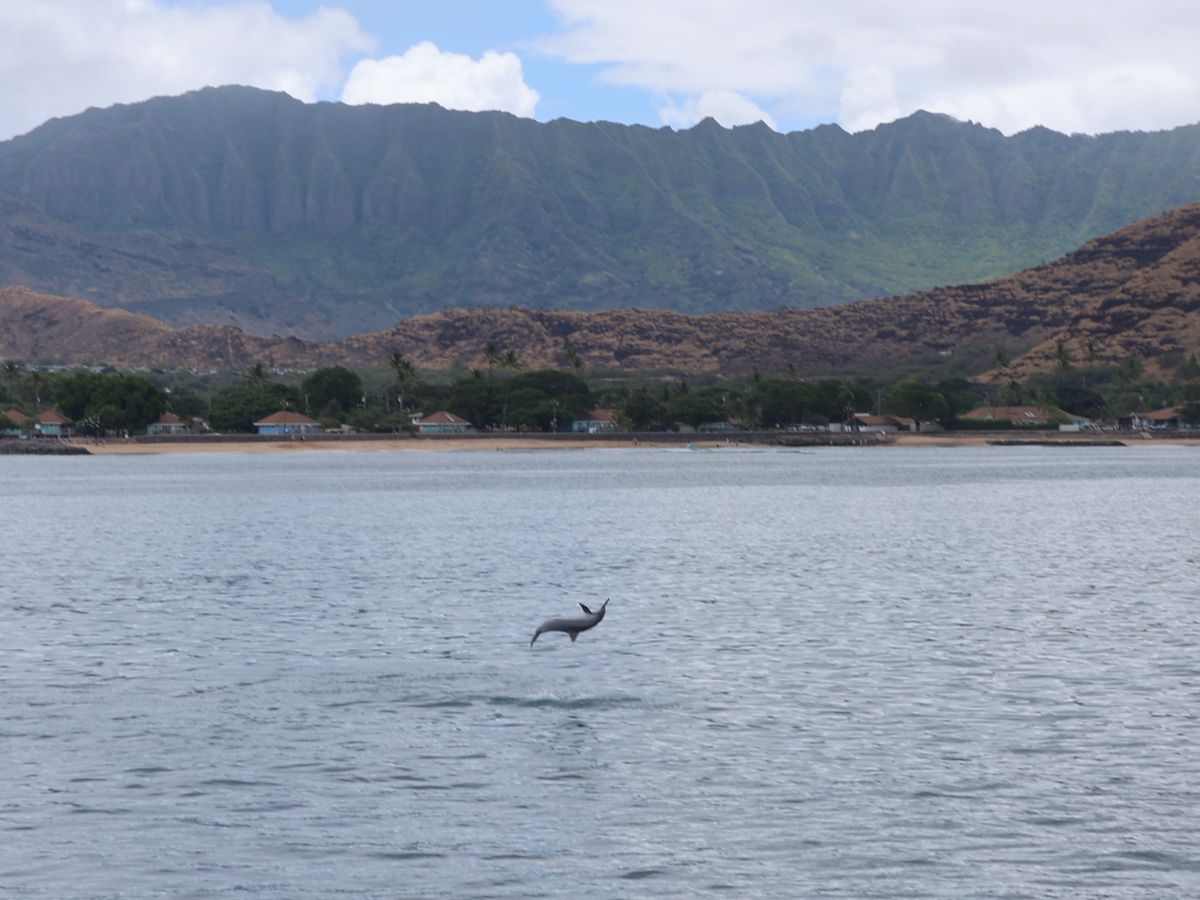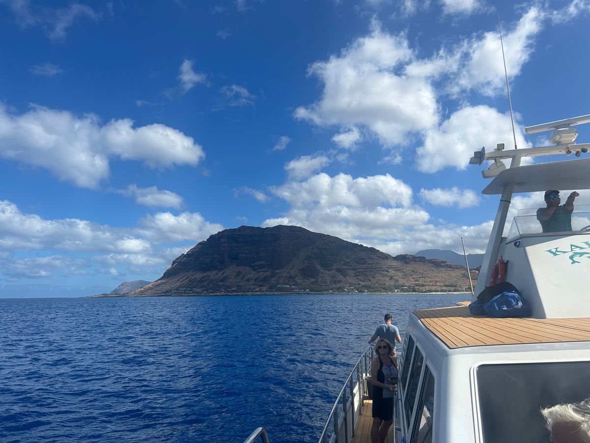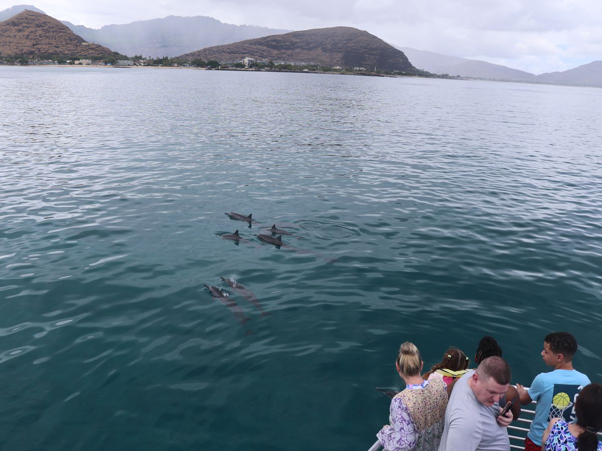 オアフ島最西端付近をクルーズする「イルカ大学」のツアーに参加しました。日本人スタッフが多く、説明も丁寧で終始安心して楽しめました。船上では周囲の島や景色についての解説もあり、ハワイの自然や文化をより深く知ることができました。クルーズ中には3回もウミガメに出会い、野生のイルカの群れも観察。特に子イルカがジャンプする姿には感動しました。クルーズ後は、足のつかないほど深い海でのシュノーケリング体験。餌に集まるカラフルな魚たちと泳ぐのはまさに夢のようで、大自然との一体感を味わえる、非常に満足度の高いツアーでした。
