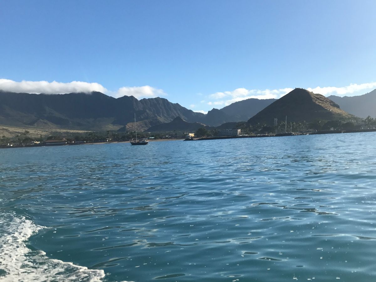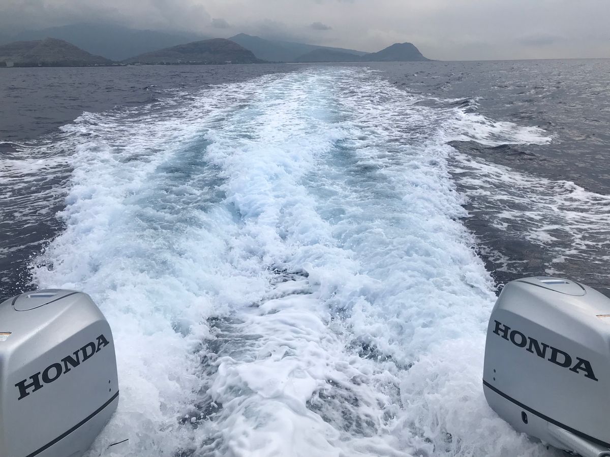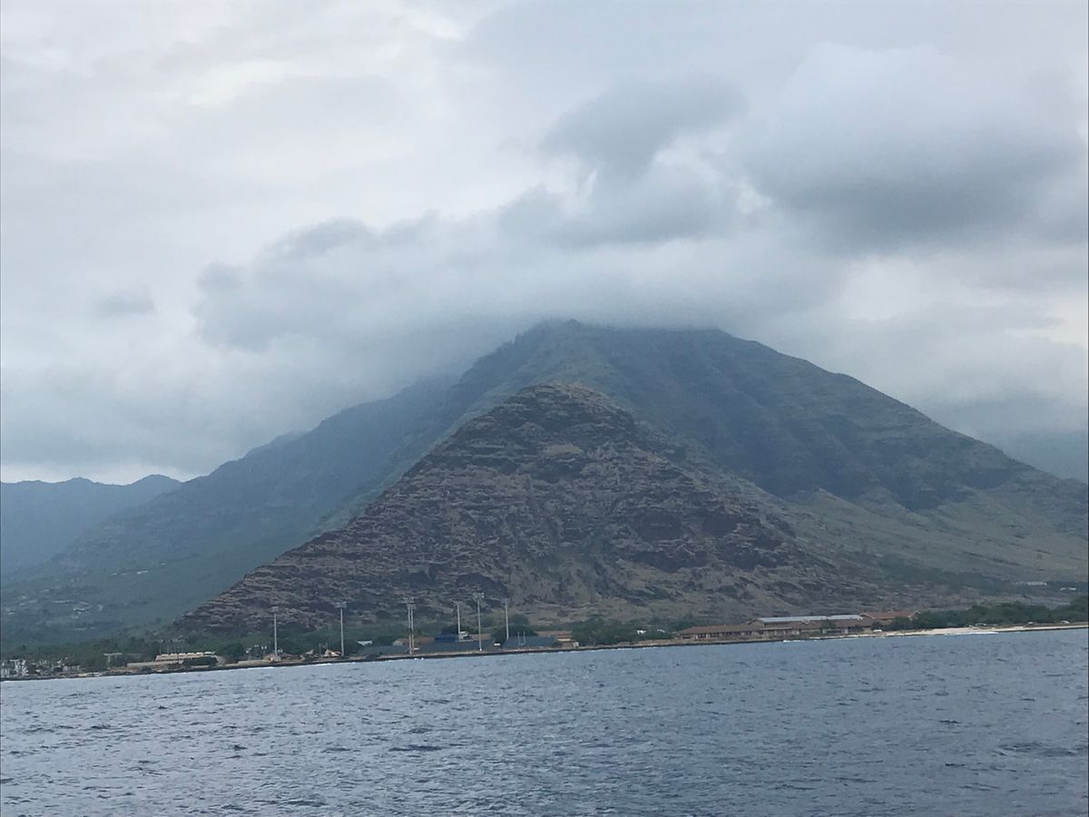 ホノルルは雨模様でしたが、ホノルルからは結構離れた場所なので天気は奇跡的に良好でした。しかし波がそこそこ高く、かなりの人が船酔いにあってました。一部の人は海にはいってプカプカ浮いてるだけで酔ってました。酔い止めは必須といっても過言ではありません。ABCストアでも売ってるので準備したほうがいいでしょう。