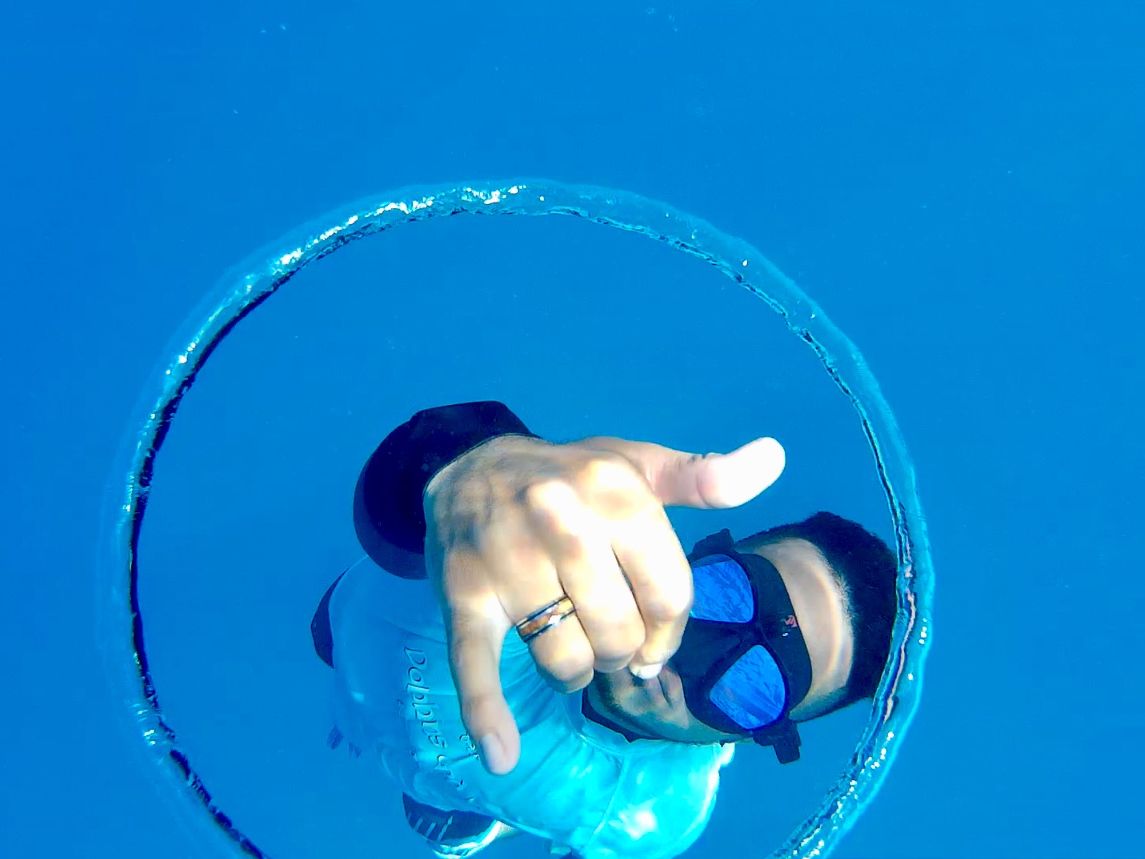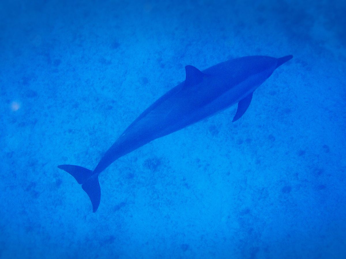 一瞬でしたが5m程先のイルカと一緒に泳げました。