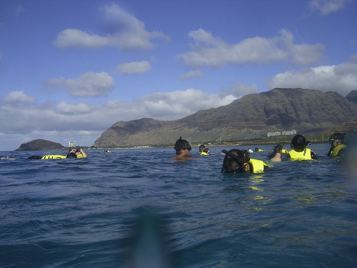 ワイキキから高速道路を利用して西に約1時間の比較的波静かな場所でのシュノーケリングです。