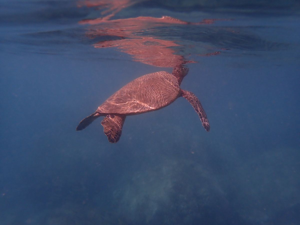野生のイルカとウミガメが見たくて、このツアーに参加しました。イルカは泳ぐのがとても早く、近くで泳ぐというより、やや離れたところでススーと泳いで行ってしまうところを見れたという感じでした。ところが、ウミガメは海底で泳いでいると、たまに水面に上がってきて、プハァと呼吸をしていました。しかも30vmくらいの目の前で!!ウミガメに触るのは禁止で、インストラクターの方に近すぎるから離れて、と言われるくらい超近距離でした。ウミガメのプハァと水面に顔を出す姿はとても愛くるしく、大好きになってしまいました。なお、海水は思ったより冷たいので、タオルと上に羽織るものは忘れずに。