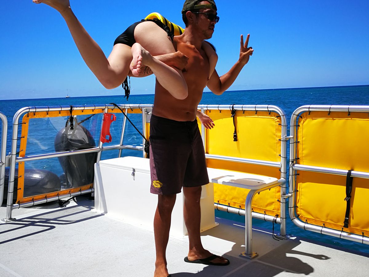 出港してからシュノーケリングポイントまでは結構な時間がかかりますが、船上ではスタッフのみなさんが盛り上げてくれて非常に楽しい時間を過ごせます。
