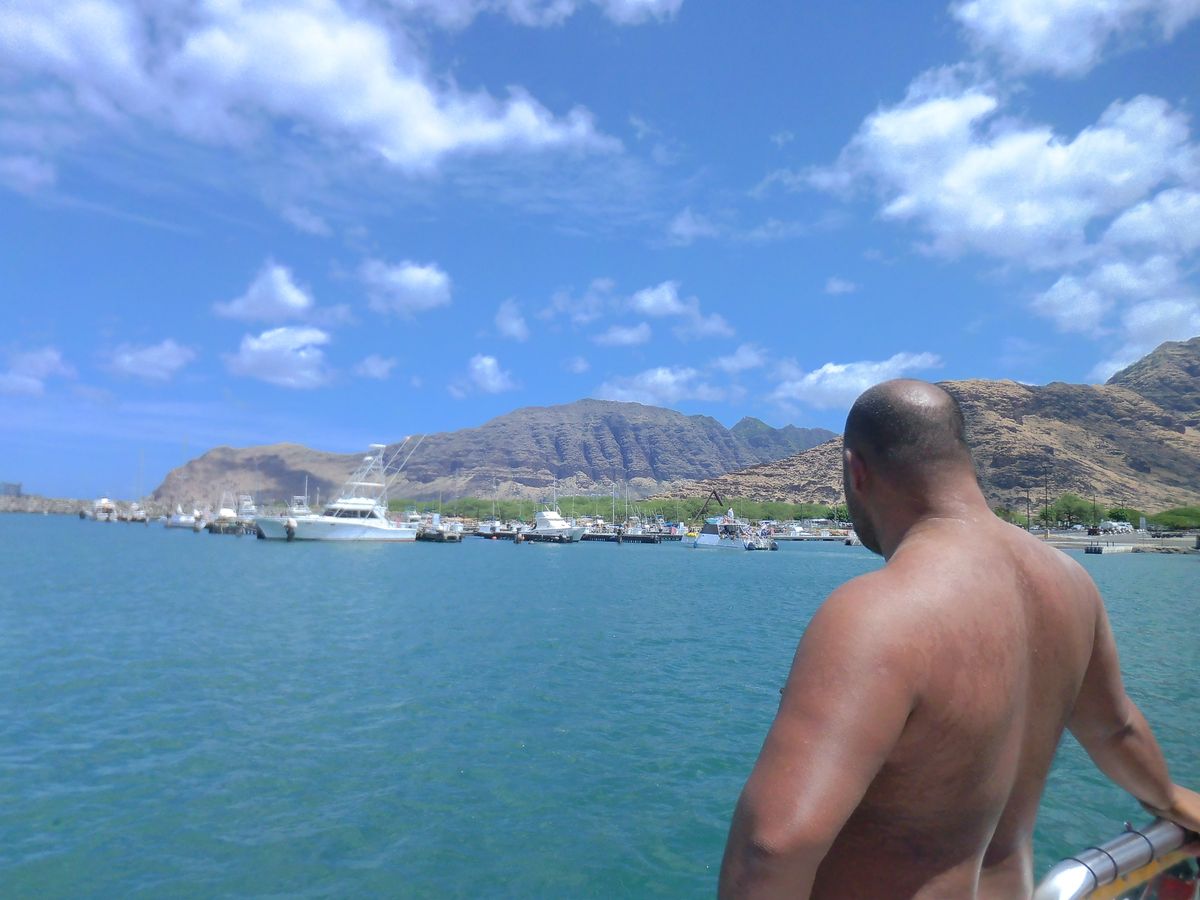 集合はシェラトンのALOHA landingになりました。その後移動して港につきました。名門イルカ大学などと利用する場所はほぼ同じでした。この日は港のすぐそばまでイルカが入ってきておりほんの数分でたくさんのいる形と会うことができました。