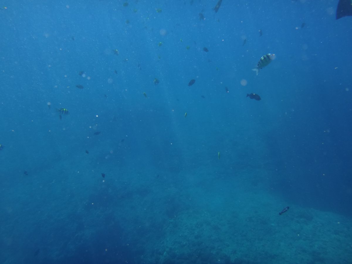 水中であちこち目を向けるのには当然慣れていないので、とにかくスタッフさんの指示のもと、下見て〜〜右見て〜〜と言われた方角を見るとばっちり、そこにいてくれた、という感じでした。