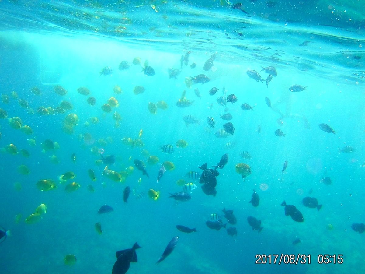 ひとしきりイルカと泳いだ後は、シュノーケルポイントに移動し、しばらく自由に泳ぎます。海底から呼吸に上がってくるウミガメも、本当に近くで見ることができました。いい経験になると思います。