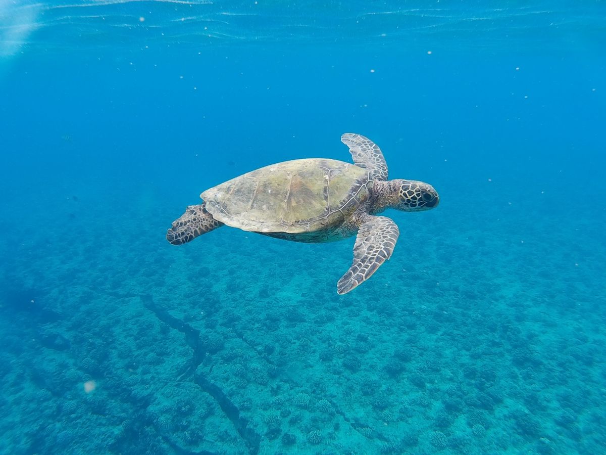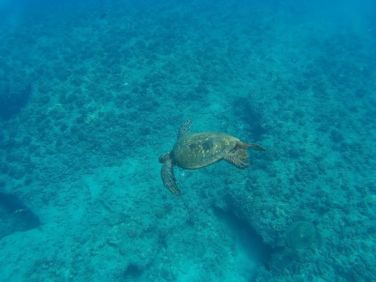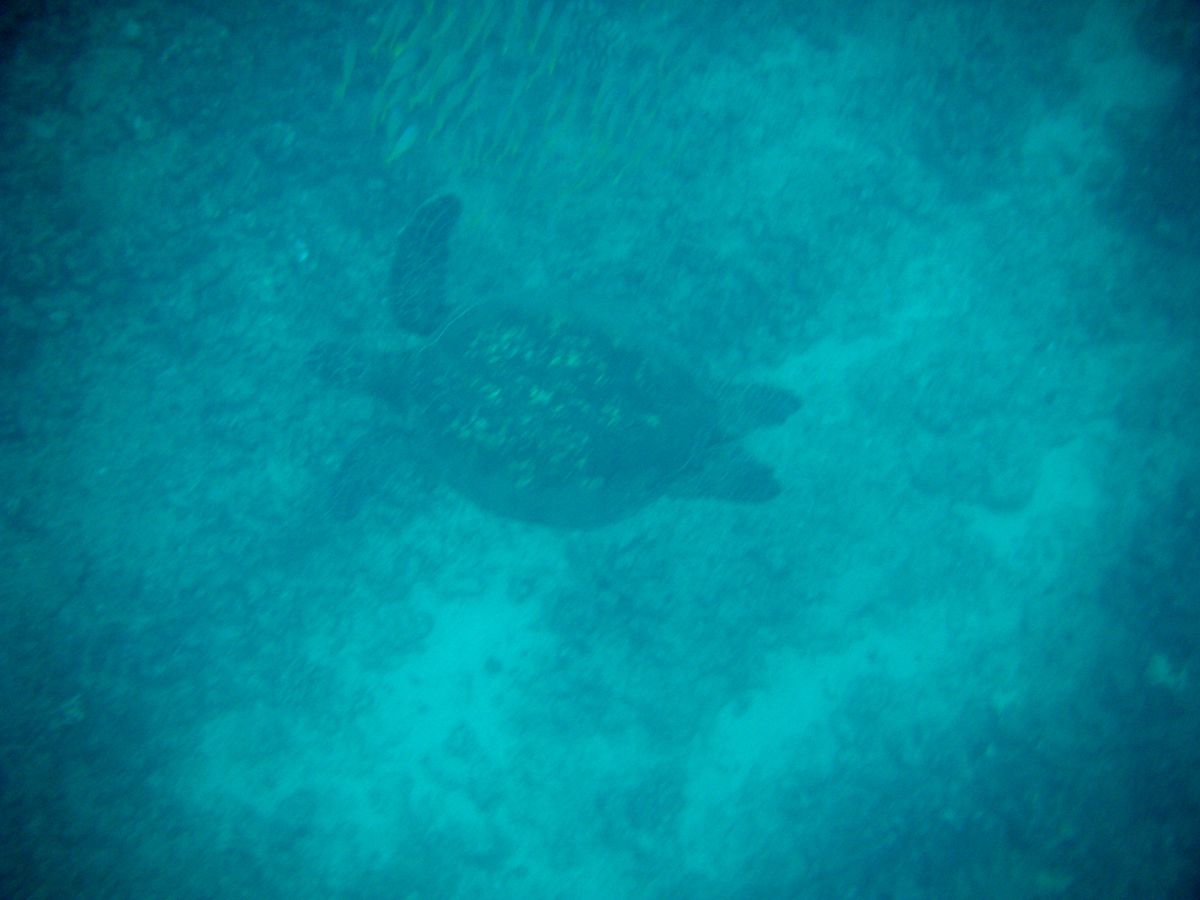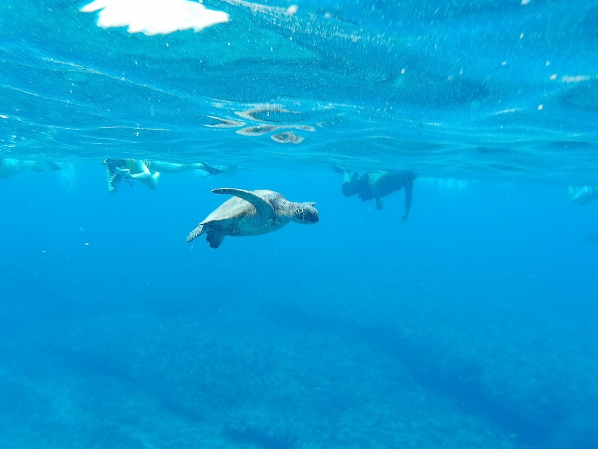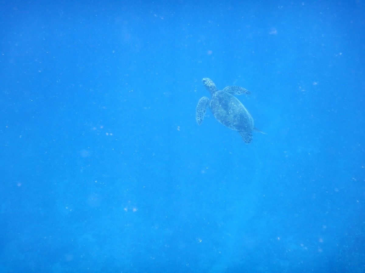 イルカを見たあと、シュノーケリング場所では水深10メートル程のところに海亀も泳いでいるのが見えて嬉しかったです。